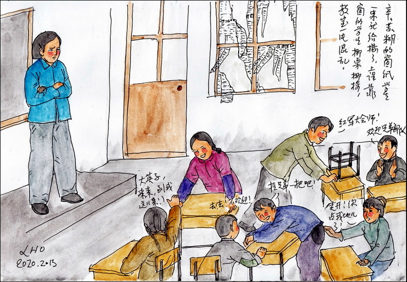 我一遍一遍地阅读《实践论》《矛盾论》,按照“抓事情主要矛盾的主要方面”的教导,在班上男女班长身上苦下功夫。女班长吆喝起来,满嘴脏话。奇怪的是同学们还都听她的。她家我常去,穷得不得了,低矮的土房,土炕土地,一堆孩子。一天早上我去她家通知什么事情,推门而入(那阵各家都不拴门的),一家人全都在睡觉,大大小小老老少少都睡在一张大炕上,还全都光着身子。我吓得赶紧跑出来。心想难怪这些孩子骂起人来一清二楚,全都是床上的事。