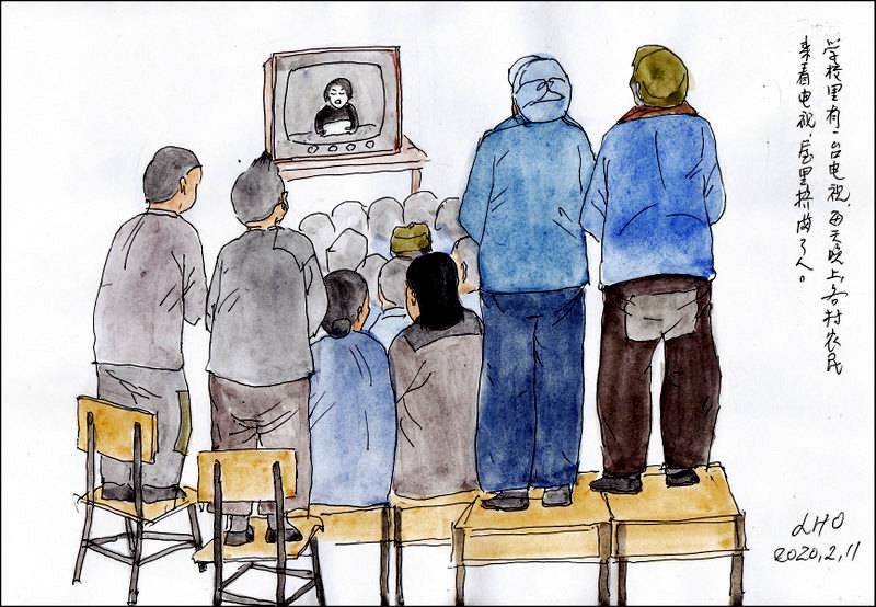 学校有一台黑白电视机,大约是全公社唯一的一台,放在食堂,每晚放电视,永丰屯甚至大牛坊村屯佃村的学生和农民都来了,从各个教室搬出桌椅,坐着蹬着踩着,满满登登挤了一屋子。