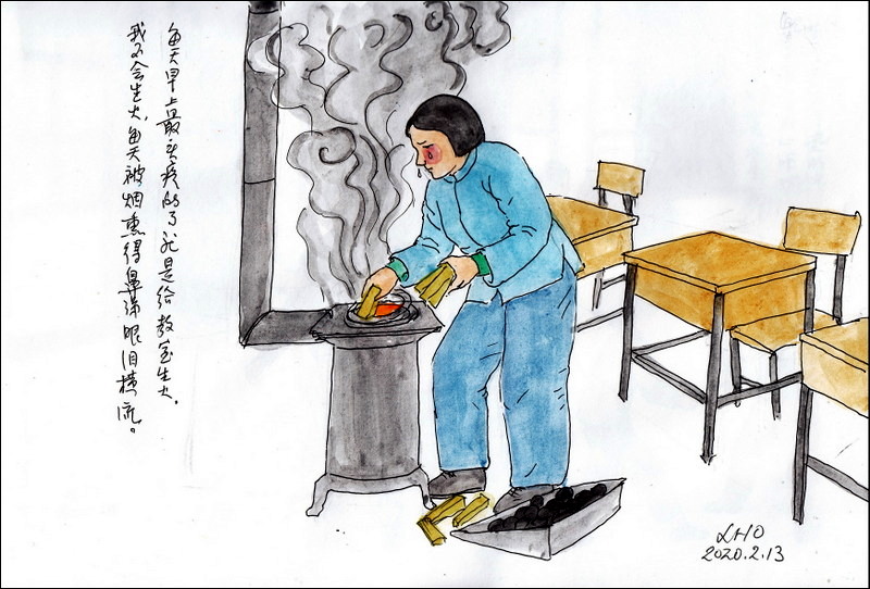冬天,值日生应该提早到校生火,可是值日生总是踩着上课铃才到校,上课了火还没着起来,学生们搓手跺脚,甚至全班有节奏地跺脚表示抗议。为了避免求爷爷告奶奶地请学生早到生火的麻烦,我起床后马上先到教室去生火,没有生火经验,被烟熏得鼻涕眼泪直流。