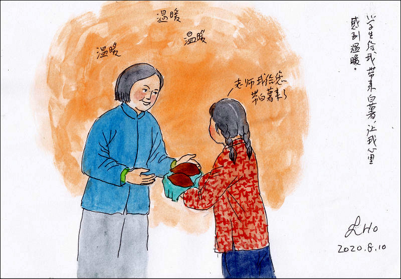 有的学生从家里给我带来白薯,让我感到很温暖。