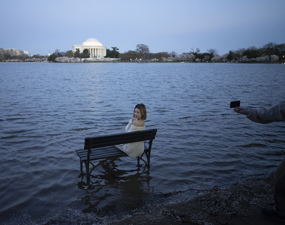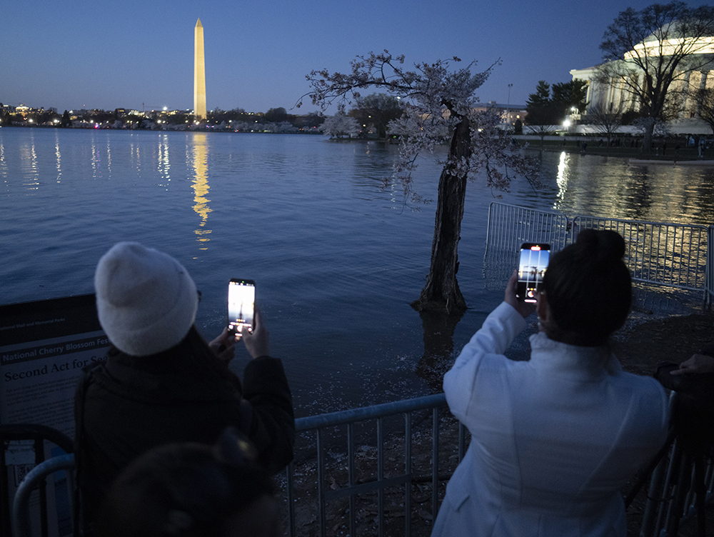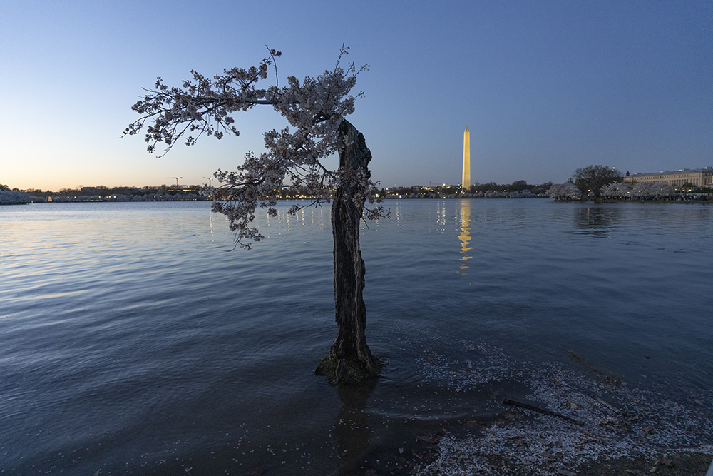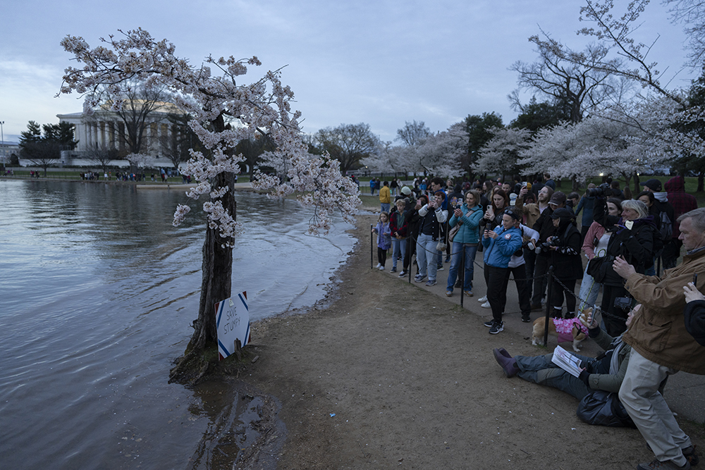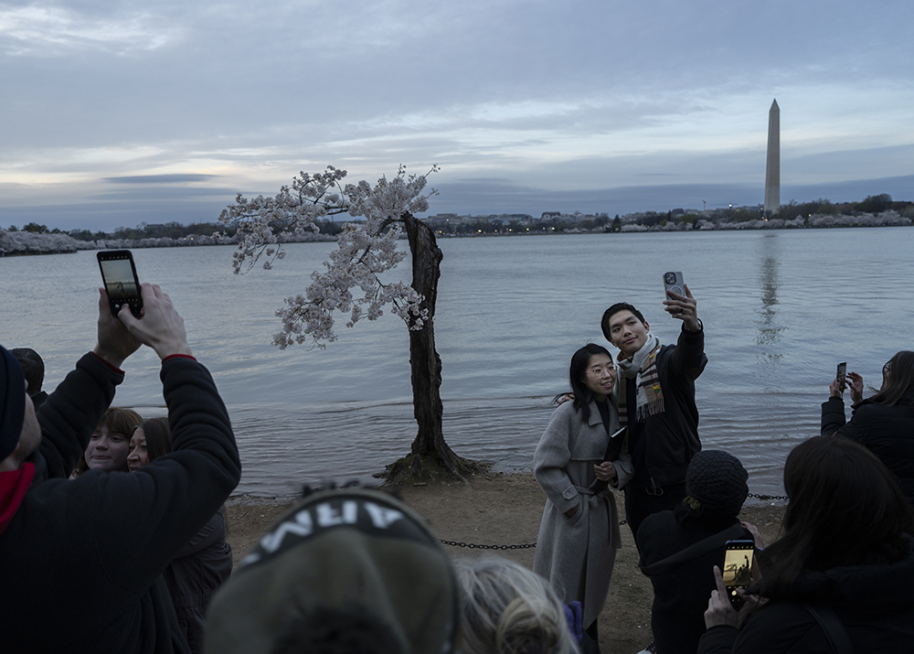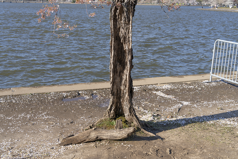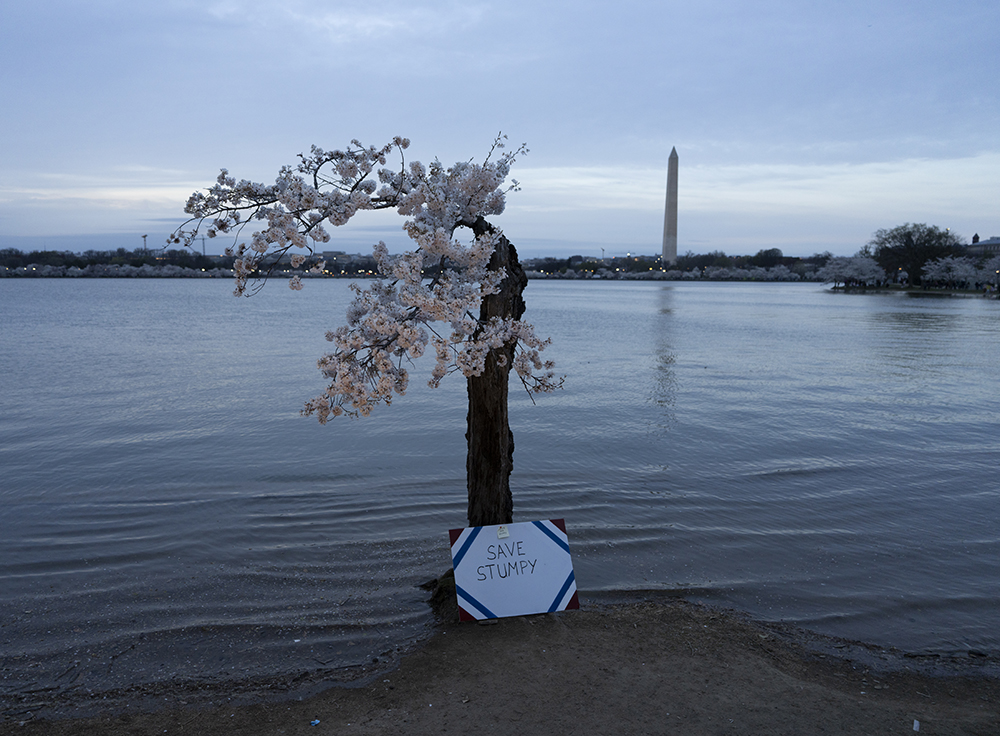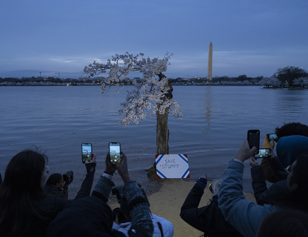 今年华盛顿的知名景点- 潮汐湖畔的樱花,格外引人瞩目。据美国各主流媒体包括ABC, NBC,等新闻机构的报道,自1776年至今,潮汐湖两边的陆地已下沉5英尺之多,因此沿岸经常被潮水淹没,为了解决这个问题,今年岸边的150棵樱花树将被砍掉以便重新修建岸堤,而这150颗树中有一株网红树,美国人叫它“Stumpy”,即“矮墩墩”的意思,而老中称它为“树坚强”,因为它的树干虽然早已被岁月风蚀掏空,病入膏肓随时都会死亡,但奇怪的是,年复一年,它的树顶总是顽强的开出烂漫的樱花,就是拒绝死亡,多年来一直是游客驻足观看的“奇观”。听说与美国人和睦相处的这棵近120年(1909年由日本赠送美国人民)的老树将被砍掉,很多美国人在网上发起请愿,希望政府“刀下留情”,把它移植到其它地方,有人为它献上葬礼上用的白玫瑰,有人点上烛光为它祈祷,还有人在它面前哭泣,来自世界各地的游客们更是争相恐后纷纷拍照,记录下“矮墩墩”在世的最后时光……