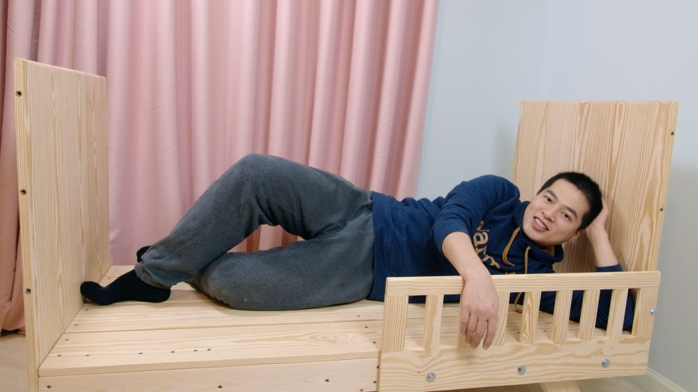 最后全都拆了,变成平板床,要是娃长大了,不睡了,可以当成平板沙发: