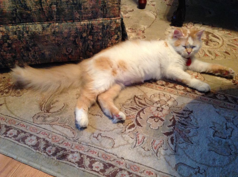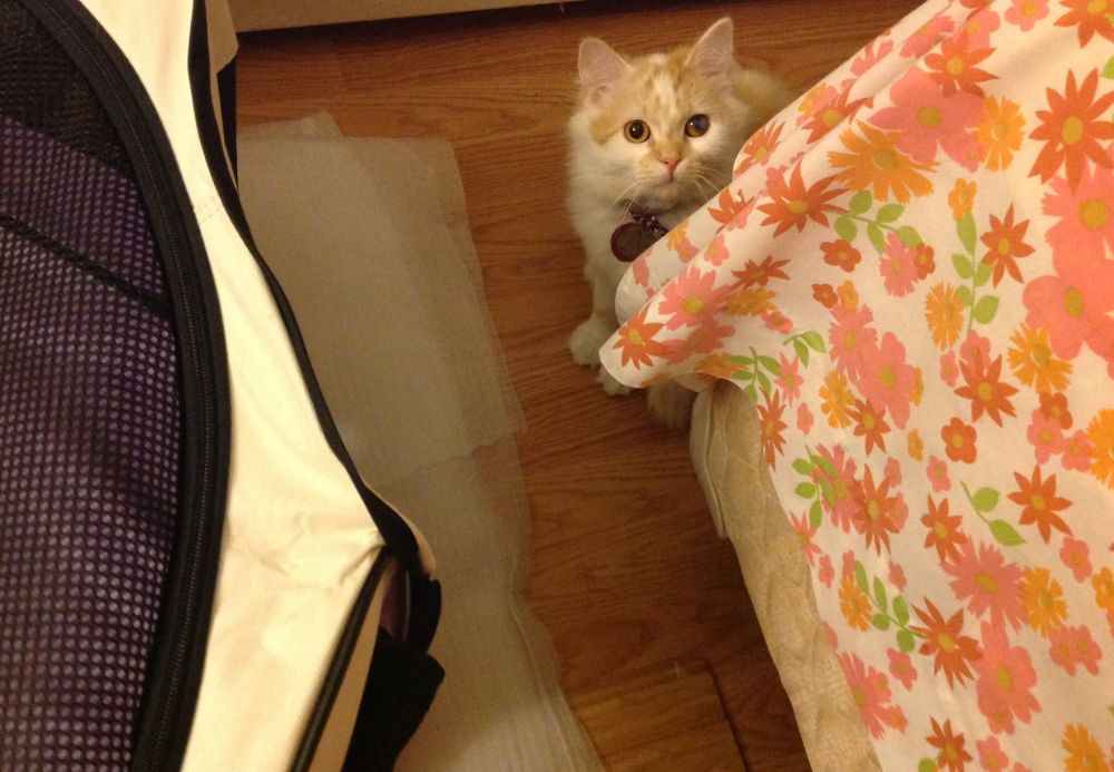 到我要暂时离开纽约的时间了,Sally需要回娘家了。它还是不让我碰,根本就抓不住它,非常灵活的一只小猫。每次我伸手碰到它身体或者伸手想抓它,Sally从不哈我,也不伸手反击我,它只是快速躲开我的手。我只能救助Sally 娘家人来我家接它。