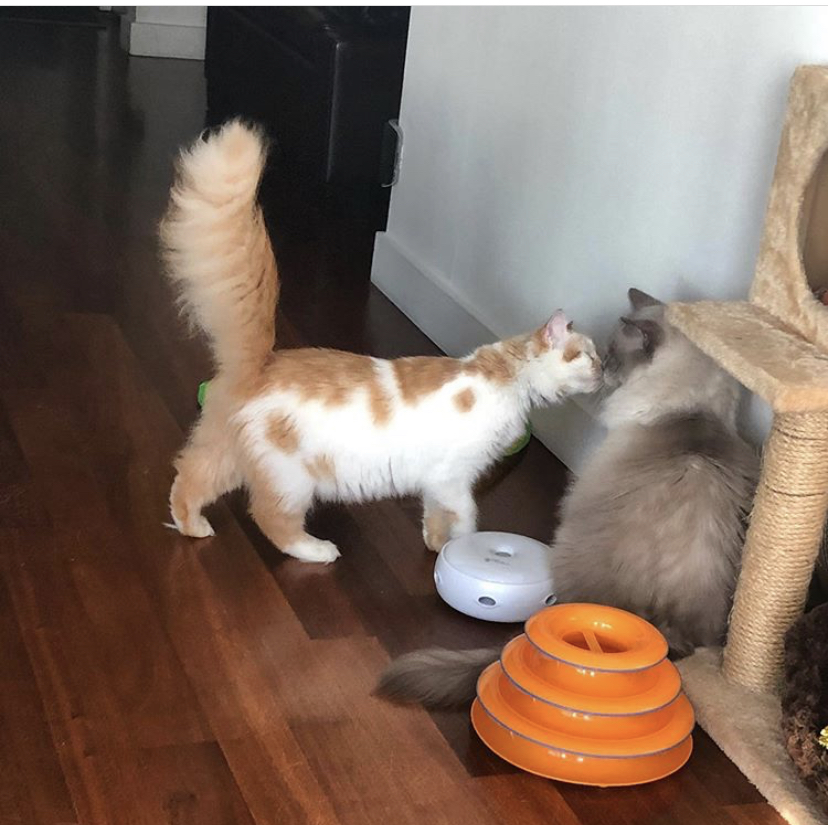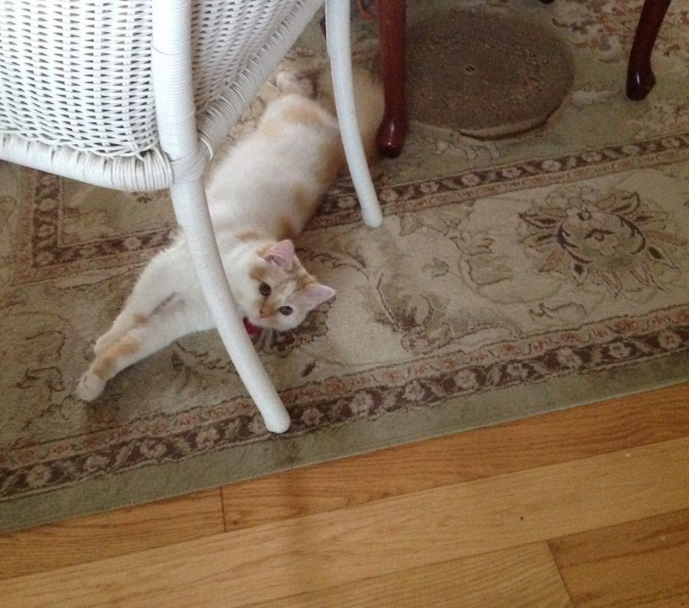 5/12/2020,周二,第十五天。现在Sally 听见我帮它搅拌猫罐头湿粮时会小声喵喵叫,然后坐等着,知道要吃湿粮了。今天Sally 可以注意到从空中抛过去的小纸团,会去接。