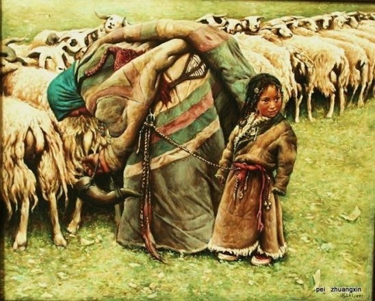 一个画家,裴庄欣,他用西洋的油画技法表达的西藏世界显得那么别具一格。即使在当年也已令他在国际上成名。即使裴庄欣依然在画画,也依然不能改变他的西藏组画带来的时代印记,并且令后人难以超越。