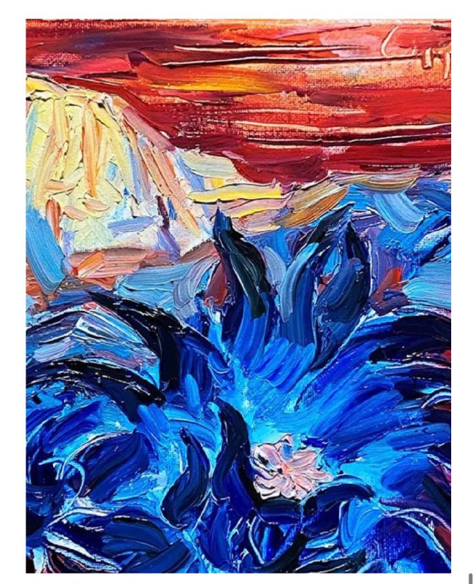 你的画,即使想表达的思想与西藏无关,即使用的笔和色彩与西藏无关,即使所画的具体内容与西藏无关,但当你从画布前移开,走出几步远,转身,再看你的画,我仍看到了你的西藏……譬如近期的蓝莲花,画的基因,还是西藏……充满了神圣,如佛陀的加持……