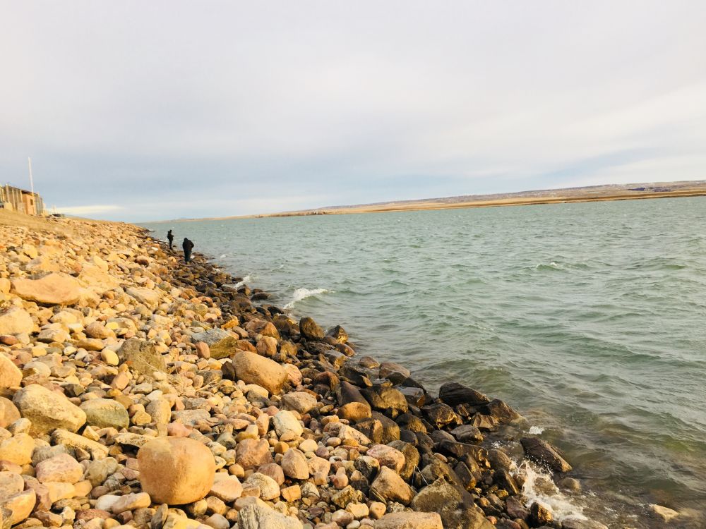 牛奶湖位于卡城东南300公里左右,风城Lethbridge 东南44公里处,长年的大风使得湖面比周围的湖晚三,四周冰冻,而且因其水质清澈透亮,湖里的白鱼自带一种清甜和淡淡的蟹黄味而深深地吸引着卡城和四周的钓鱼高手们前去竟技。