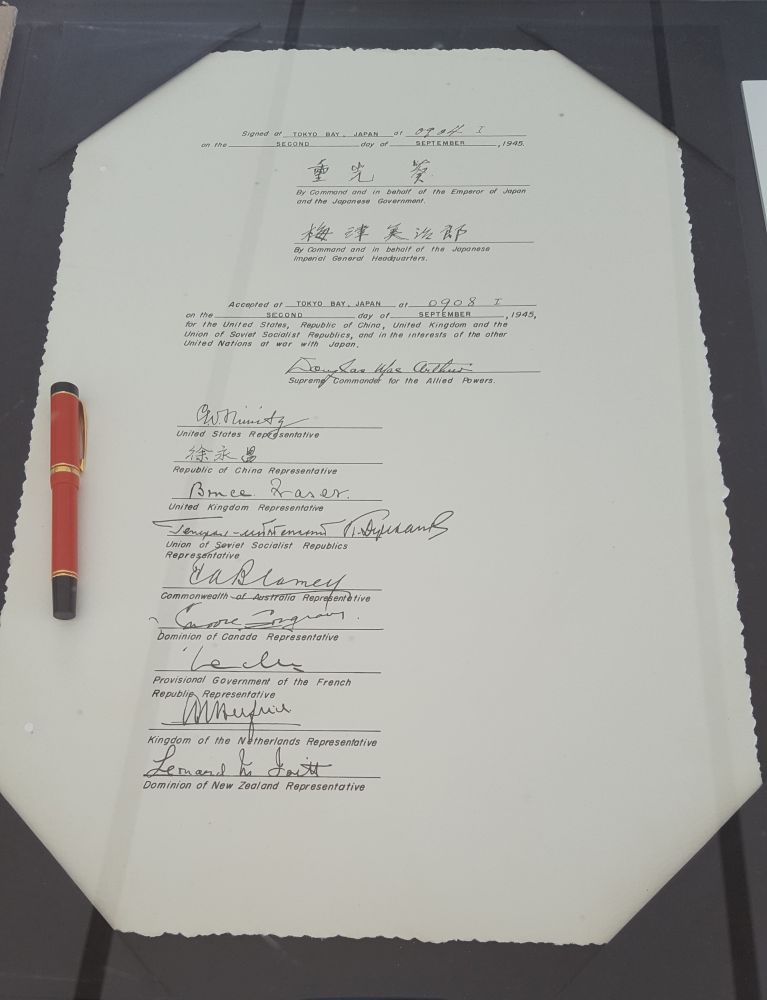 再说密苏里号战舰。这艘战舰建造于1941年,历经二战、韩战、两伊战争、波斯湾战争,1992年退役。1998年海军捐赠她作为今天的纪念馆。1945年9月2日,日本签署投降书仪式就是在这个战舰的甲板上,她也因“受降舰”而闻名。参观这个舰艇会增长不少知识,上面还有免费中文解说。据说,日本旅游团曾带自己的导游登舰参观,而导游解说有失公正,被管理方发现,于是禁止日本导游上舰讲解。目前舰上一律由纪念馆指派讲解员。