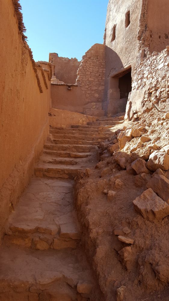 我们参加了当地的旅游团,三天两夜,午饭自理,155欧元一人。第一天从摩洛哥的马拉喀什(Marrakesh)出发,夜宿在一个叫埠摩拉达斯(Boulmalne Dades)的小镇。当巴士车将一车人拉到小镇时,我才发现这一车人买的分别是三种旅游“套餐”,司机得分别送客。一等,星级酒店;二等,旅店有暖气设备,即我们买的;三等,旅店没有暖气。