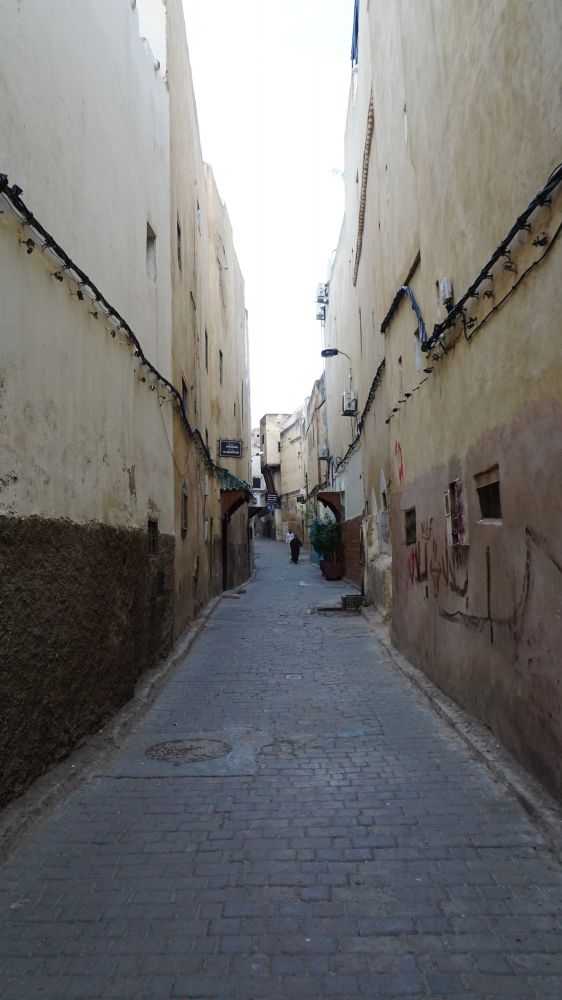 司机把我们送到摩洛哥菲斯老城的门口,因为老城内禁止机动车行驶,可却不让我们下车。只见他打了个电话,不一会儿,一个小伙子从老城里走出来,他是民宿(B&B)的工作人员,来接我们进城。我当时有点纳闷,进城还要人接?不至于吧?不是有地址吗?如今用导航仪哪儿找不到呀。后来我才明白,说老城是个谜宫一点儿也不夸张。