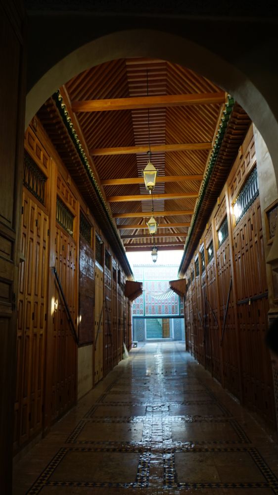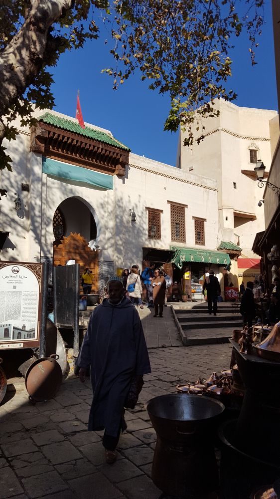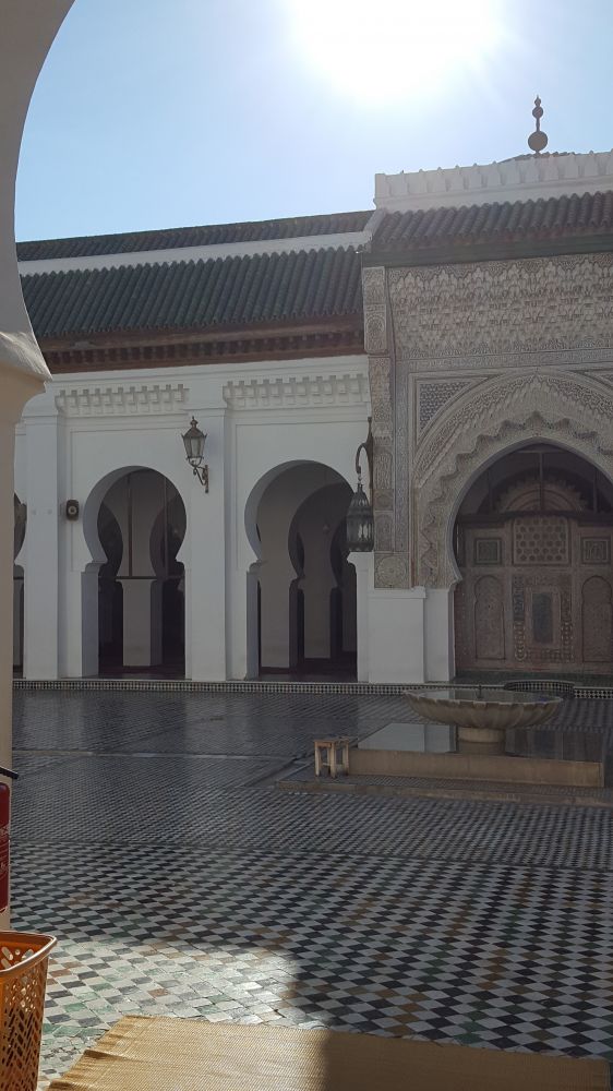 今天的菲斯古城像个古董,历史的沉积触手可及,珍贵罕见之处又深藏其中。在拥挤的古城里,可以看到最原始的手工制皮工业,铜器制作、雕刻工艺。这里还藏着世上第一本古兰经的手稿,保留着世界第一所大学,马德拉斯学院(AL QUARAOUIYINE)的原址。这所最古老,持续至今还授予学位的教育机构,建于公元859年,是经联合国教科文组织(UNESCO)和吉斯尼记录认证的。她的创办人是一位穆斯林的女人,法蒂玛·艾尔·法里(FATIMA AL-FIHRI),这不得不让人刮目相看。