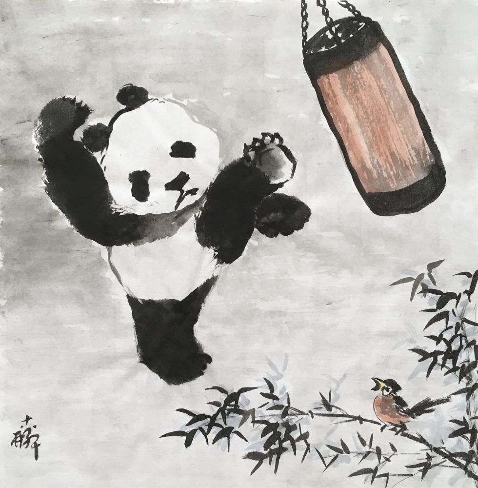 【熊猫油诗:功夫】熊猫日日打沙包难怪功夫那么高据说练成金钟罩枪炮不入何况刀老鳞 2022-09-28