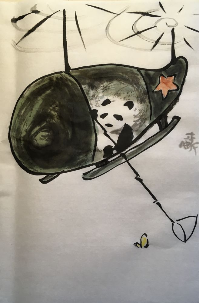 【熊猫油诗:追蝶】此蝶胆子肥哪里都敢飞侵犯我空域熊猫驾机追老鳞 2023-07-14