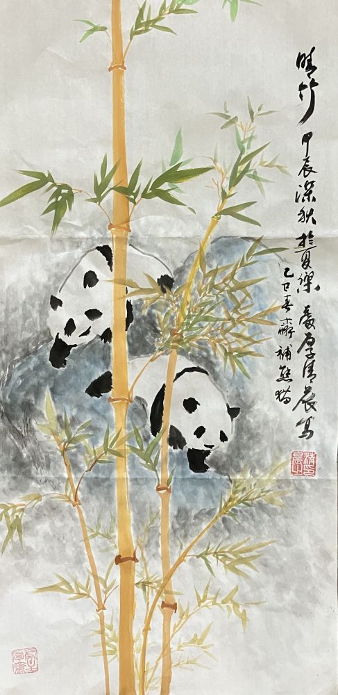 【熊猫油诗:金竹】只要功夫深 铁杵磨成针铁砚磨穿底墨竹变黄金老鳞 2025-03-26清晨书友写金竹,为补熊猫。