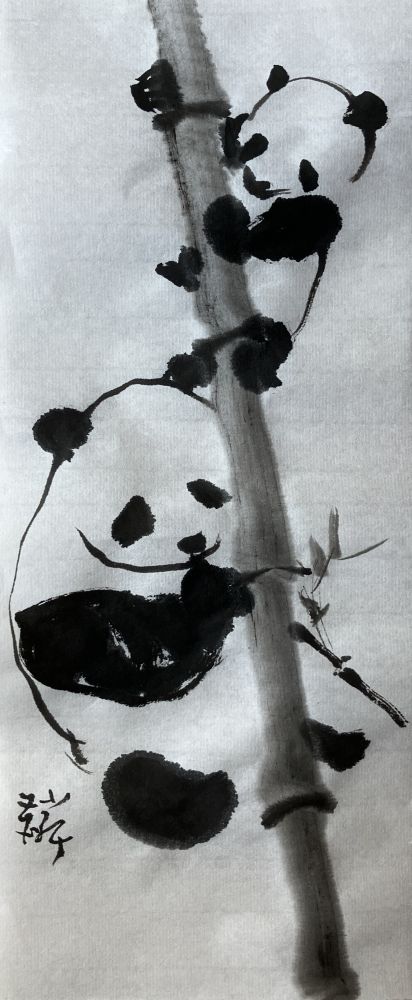 八只熊猫悠然居, 翠竹纷披绽翠珠。 一啃柔韧纤...