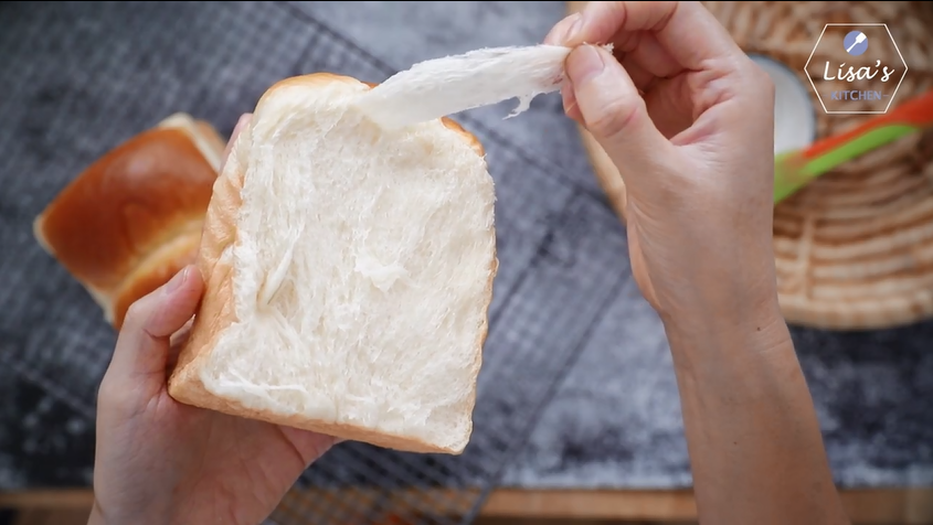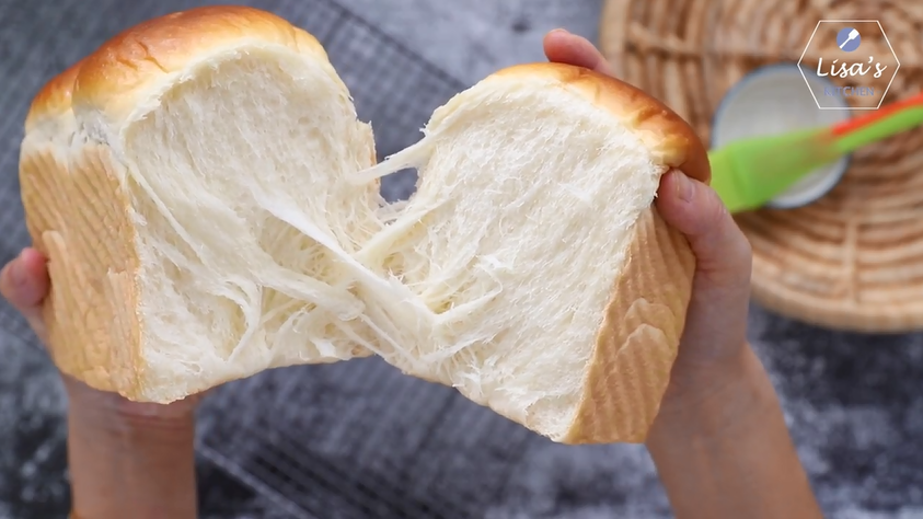 今天做的山形牛奶吐司,超级松软拉丝, 用的是普通吐司模具(20cm长 x 11cm宽 x 11cm高),烤完后蓬松得不高不低刚刚好。吐司面包要做得蓬松拉丝,含水量一定要高,由于烤的时间比普通面包长,所以保证面包中的水分不完全流失就非常重要,否则烤出来的面包吃起来就会觉得比较干。