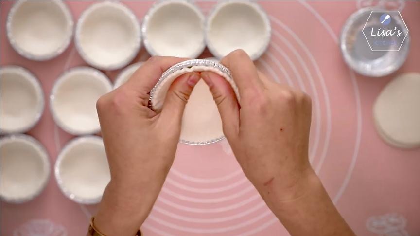 酥皮一定用拉升一下,紧贴锡箔模具上, 这样可以防止酥皮烤制时变形