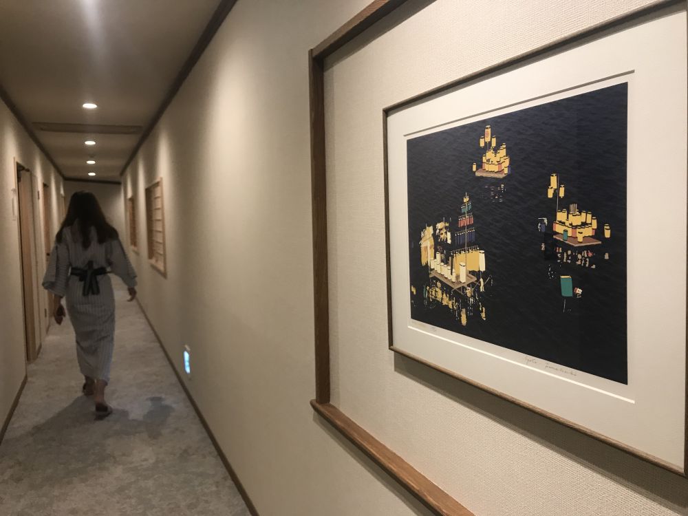 我们住的旅馆小巧而精致,睡在榻榻米上能闻到淡淡的木草味道。因为时差的缘故,晚上我们早早就睡下了。