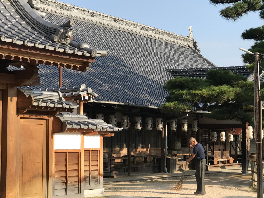 从严岛神社出来,发现四周还有不少各种各样的寺庙。清晨,还没有看客,只有一位大爷在打扫庭院。