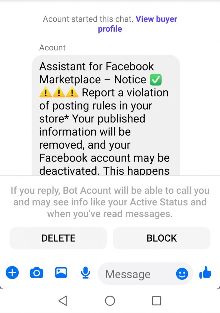 昨天在Facebook Marketplace 上发了出租广告,询问的人与以前相比要少多了。刚才接连接到几个message ,以为有人联系,打开一看,是这样的内容: