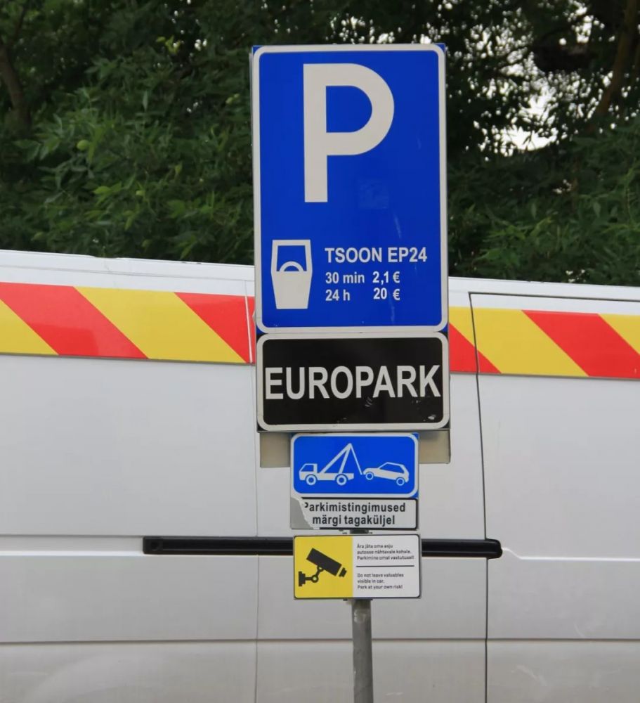 在塔林市区没有出售停车票的机器。塔林是个高科技城市,停车付费是通过手机来完成的。
