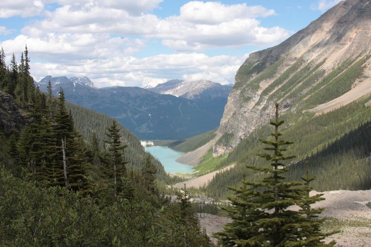 步道绕着湖转了半圈,然后向山上爬起,很快就把露易丝湖甩在身后了。