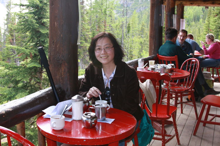 步道的终点是“六冰川茶房(Plan of Six Glaciers Teahouse)”,可以坐下来喝个茶、咖啡,也可以来碗汤,吃个色拉,三明治什么的。