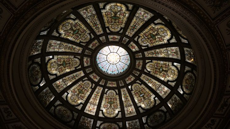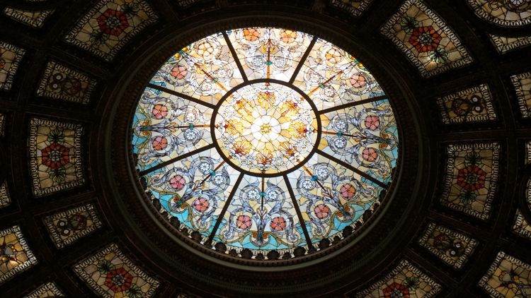 这是一个直径38英尺的蒂芙尼(Tiffany)玻璃圆顶。文化中心称这是世界上最大的蒂芙尼圆顶。请注意:不是最大的圆顶,而是最大的蒂芙尼圆顶。