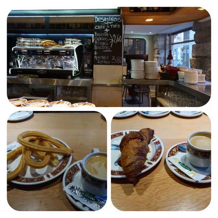 在西班牙的日子里几乎每天都是这样开始的:咖啡+油条;咖啡+羊角酥;咖啡+西班牙式的三明治;咖啡+任何不认识的点心...