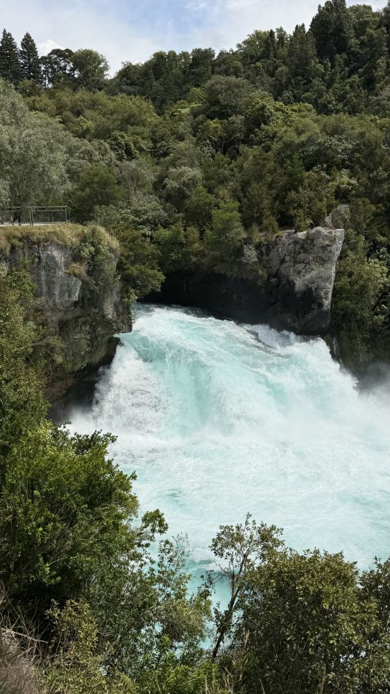 离开地热公园,再开48公里就是胡卡瀑布(Huka Falls)。这个瀑布以它独特的蓝色闻名。