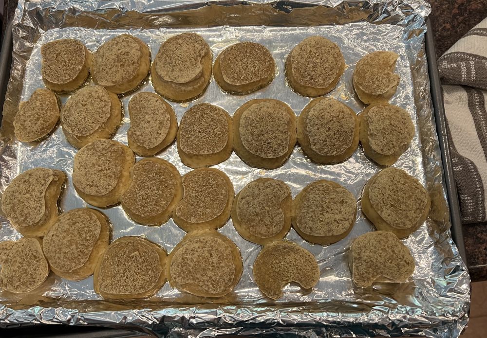 新的空气炸锅经过这么些年,尺寸比原来的大了不少,样子象个小烤箱,我家的主要用来加热冷冻pita,它也有排烟问题,热两个pita也会让厨房里产生一些烤东西的味道需要开窗通风,但比起烤箱要快很多,也就忍了。所以想到用烤箱去做。