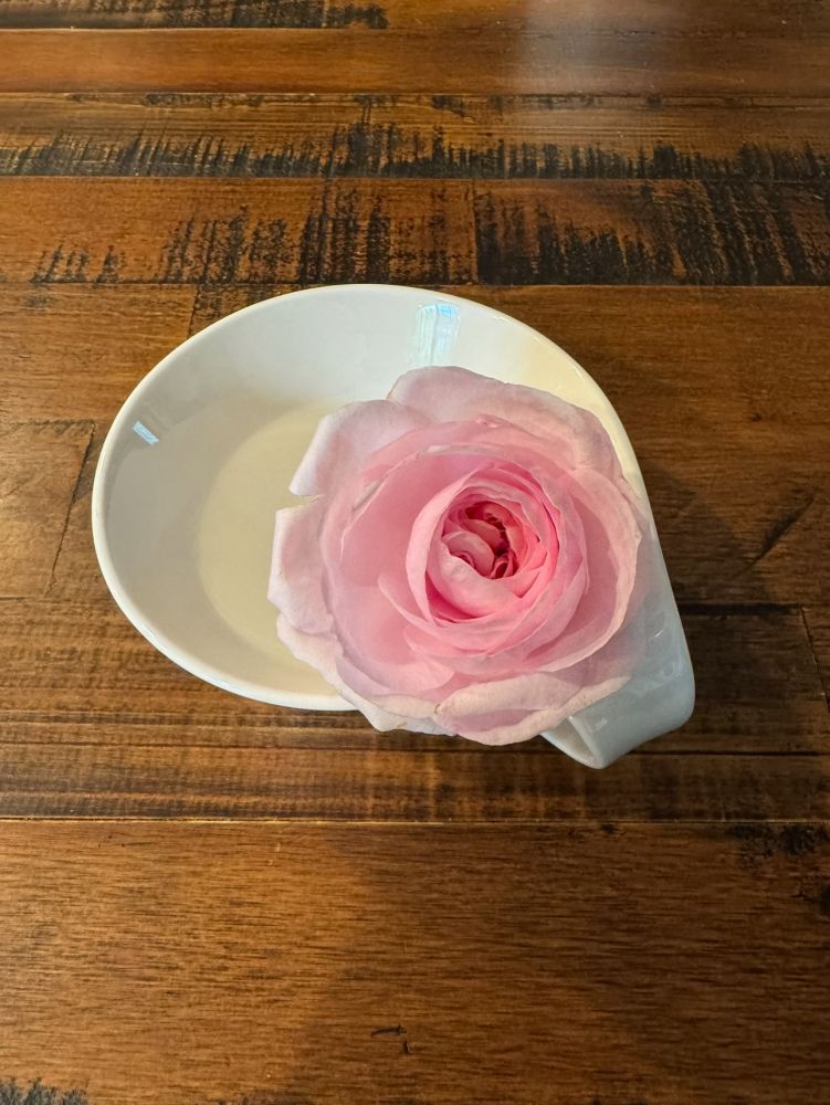 去年感恩节在heirloom买的自根DA奥利维亚长了四个小花骨朵,不舍得掐掉,开的第一朵小花给摘回来了