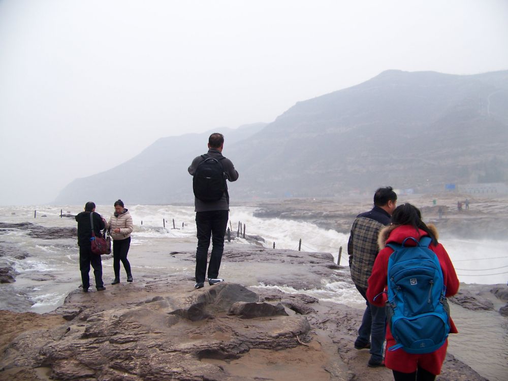很遗憾,那天是阴天,没有阳光的直射,我们没有欣赏到明朝陈维藩《壶口秋风》里的“秋风卷起千层浪,晚日迎来万丈红”的彩虹随波飞舞的奇丽景色,更没有欣赏到传说中的“旱地行船”和“水里冒烟”的异像。