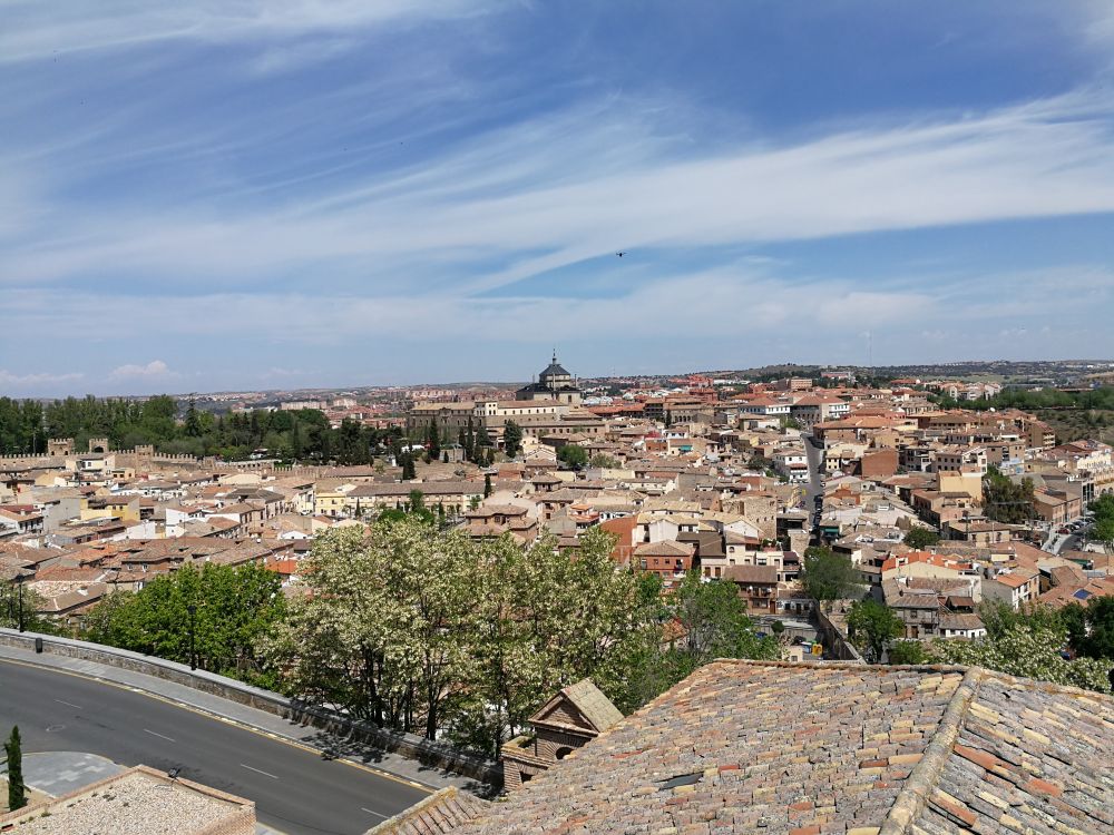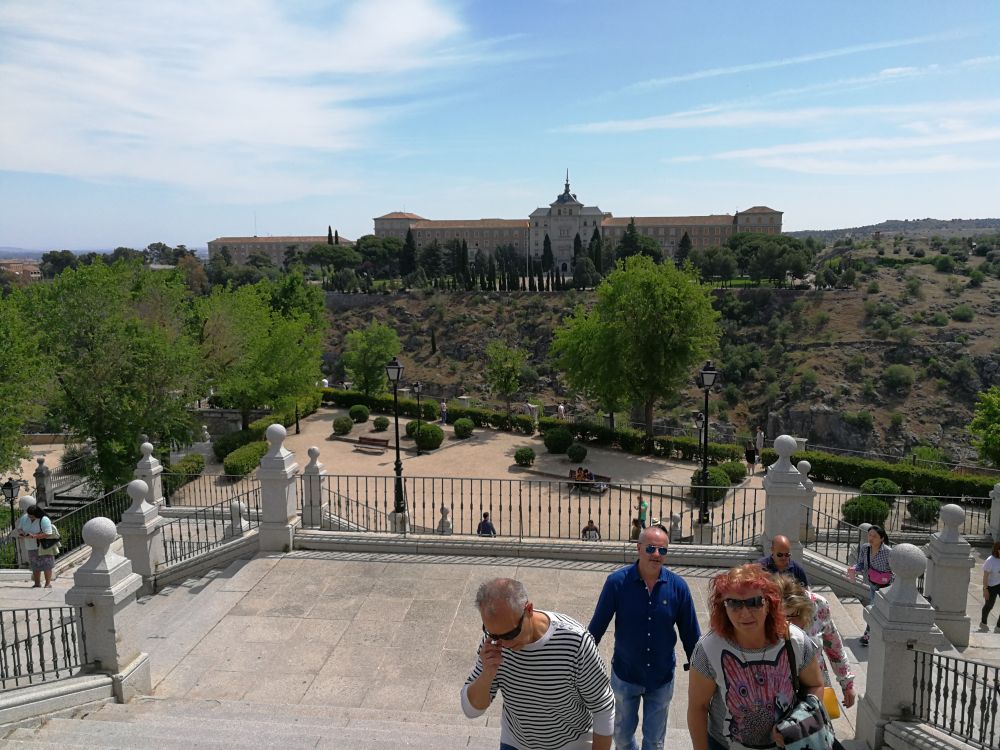 托雷多(Toledo)位于马德里西南方约70公里处,是西班牙卡斯蒂利亚-拉曼恰自治区首府和托雷多省会,它的面积不大,却是西班牙重要的政治、经济和社会中心。五月一日上午,我和老公从马德里市中心乘大巴来这里参观它的古城。沿途,我透过车窗向外看去,有时是高高矮矮的丘陵,有时是一马平川,有些破旧房屋外面,还有些晒着的衣被,使我感叹自己的衣被好多年没能晒过紫外线了。