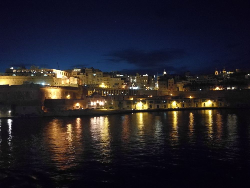 我们的邮轮在瓦莱塔港口美丽的灯光夹道中缓缓地离开。再见,瓦莱塔!
