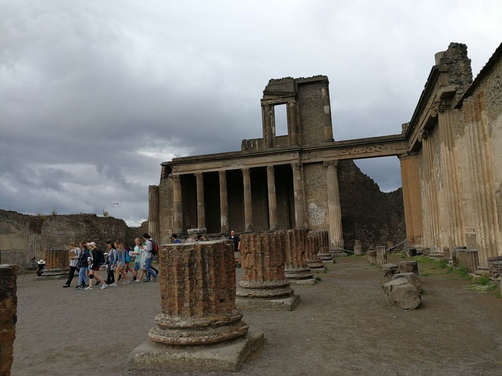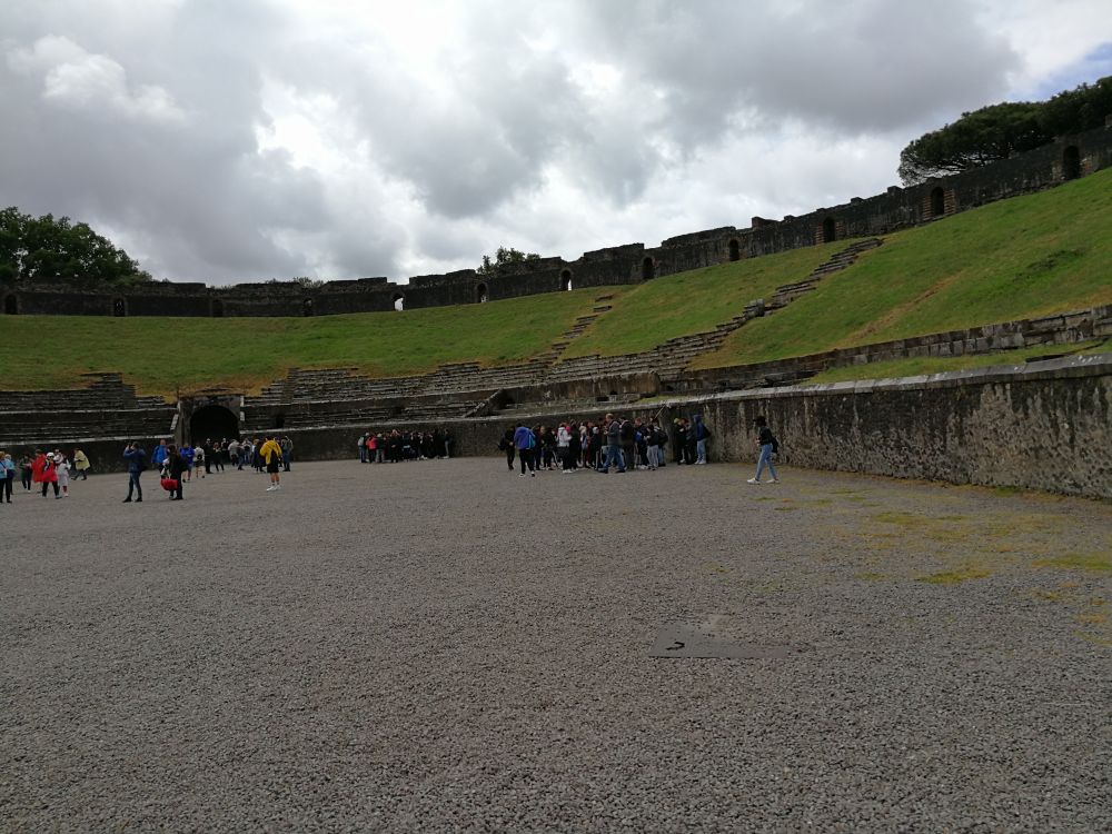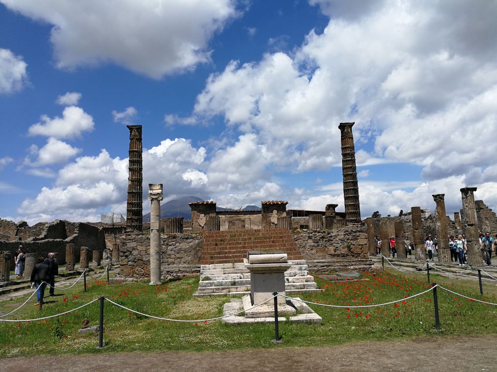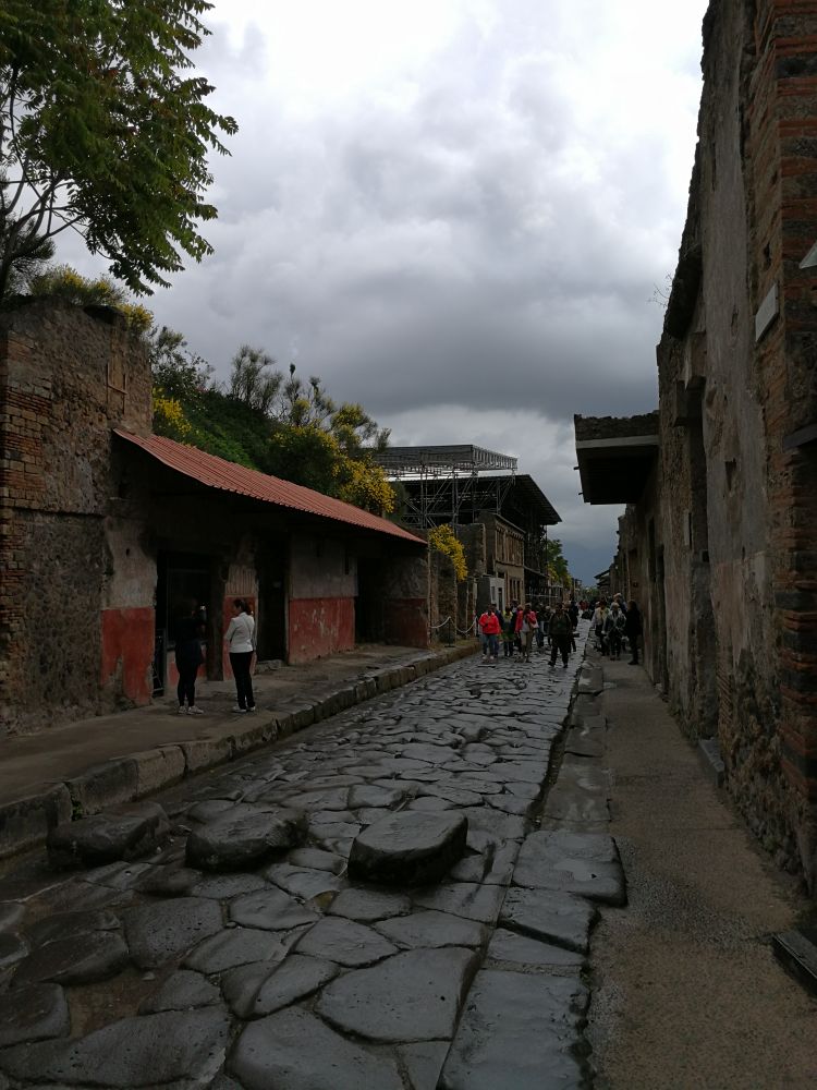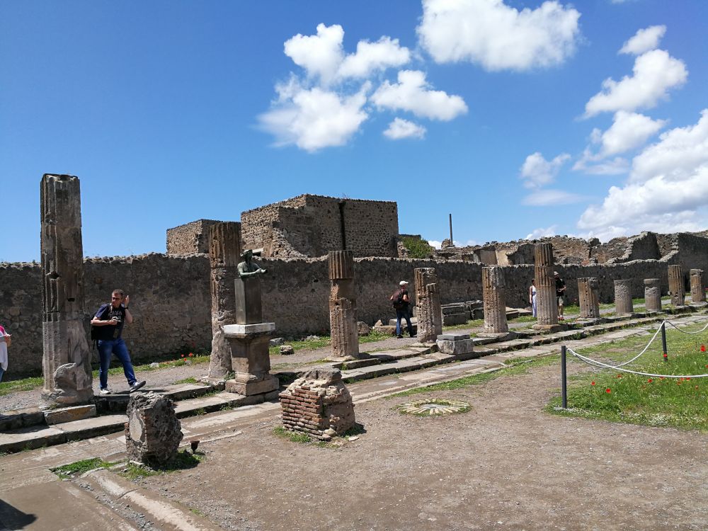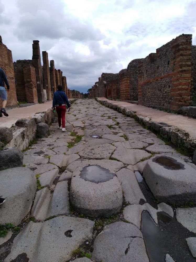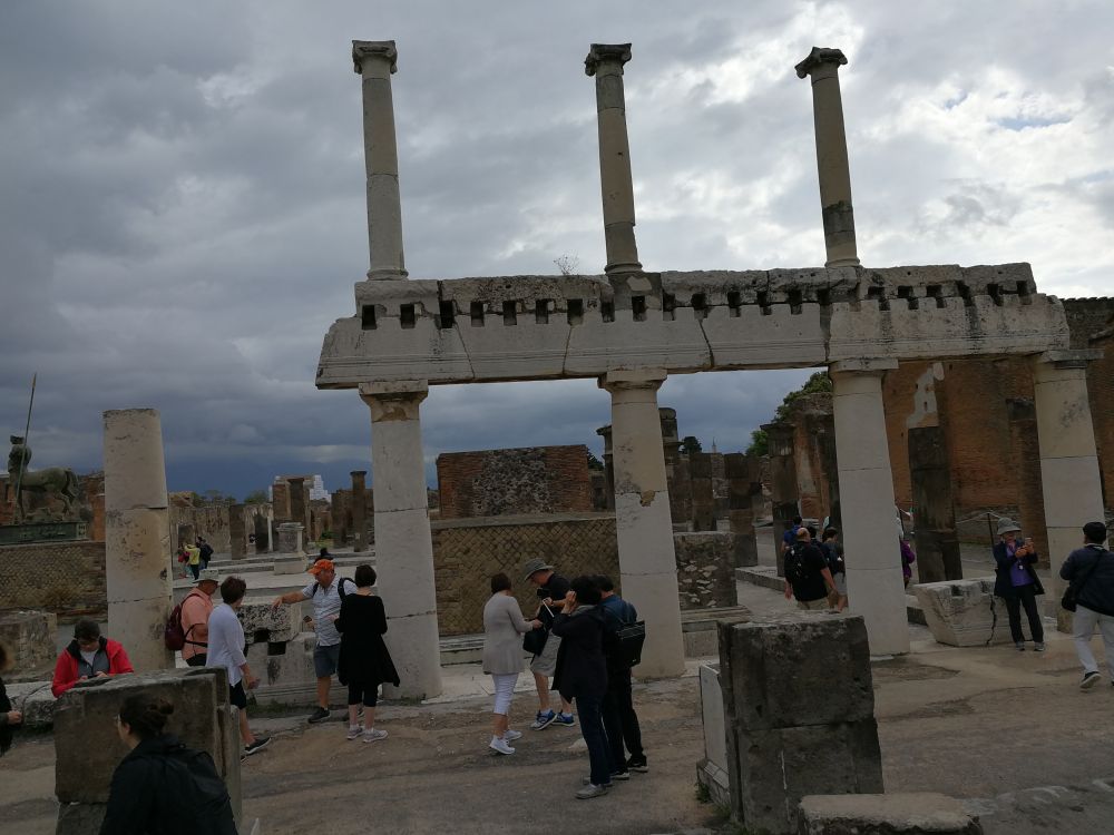 邮轮在此地停靠一天,我们选择游览庞贝古城(Pompeii)。上午10点下港时,我们又遇到朴先生夫妇,我和老公7.30出港后,乘地铁(1.1欧元),8.45赶上去庞贝的火车(2.8欧元,车上有很多拉琴卖艺的),他俩去海滩。我们约好晚上一起在船上自费餐厅吃中歺。