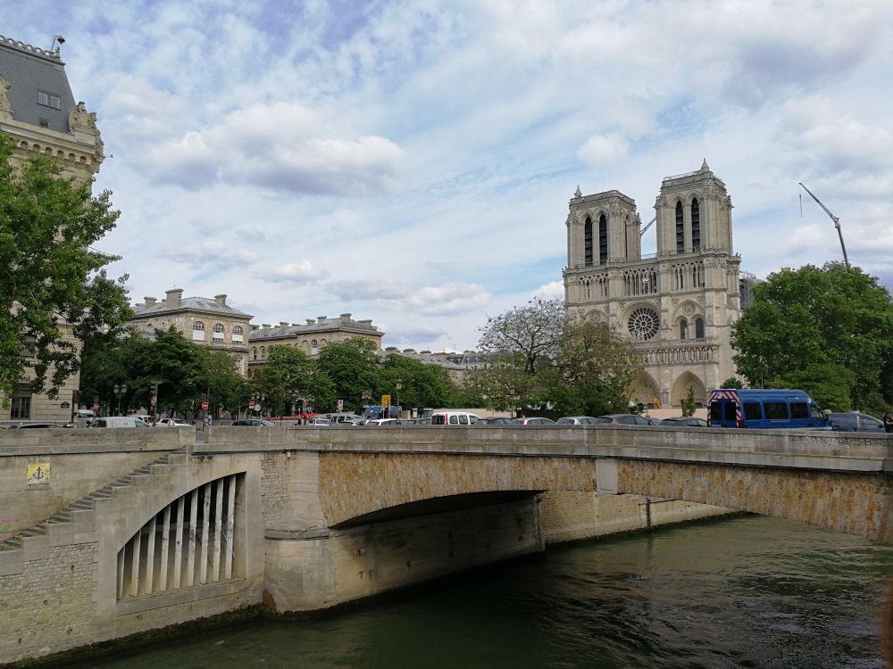 巴黎圣母院建成于1345年。她的出名,不仅仅是雨果的同名小说,更因为它是巴黎最古老、最宏伟的天主教堂。可惜,巴黎圣母院在我们来之前的4月15日惨遭大火。大火以后的巴黎圣母院标志性的塔尖倒塌,屋顶结构严重受损。老公拍摄了许多大火之后没有塔尖的巴黎圣母院,依然壮观美丽。只是火灾后,圣母院附近的街道被封锁了,不能入内参观,只能在塞纳河的另一边远远的欣赏。
