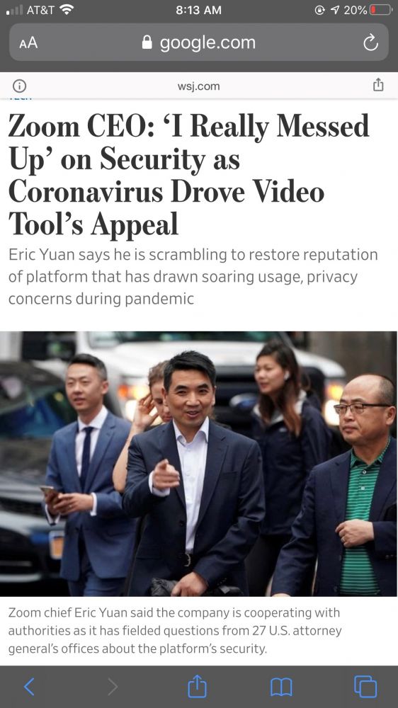 华尔街日报的报道,内容基本客观,但是选用的照片,也给人一个印象,ZOOM基本是中国人的公司,甚至中国公司。照片的选择也许是无意的(那说明他们不够职业,选择没有代表性的照片),也许就是高级黑。
