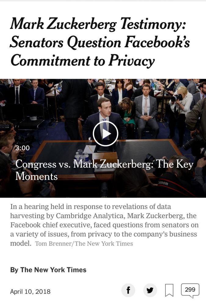 小扎在美国国会作证两天,总计10个小时,众议院和参议院的近100名议员就该公司处理用户信息的问题,对扎克伯格进行了讯问。他回答了将近600个问题,总体上有理有据,不卑不亢,面对老练睿智的国会参议院,小扎基本应答如流,获得广泛好评。当然,他也巧妙地逃避一些问题,有二十多次使用 “my team will get back you (我的团队将会晚点给您回复)” 或类似的应答。