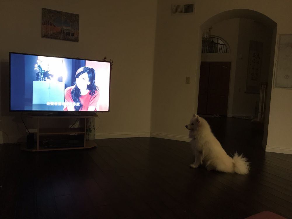 自从泡泡来了之后我的生活真的很忙。原来下了班没什么事,晚上看看电视,周末画画,也没啥提高,很无聊。现在和泡泡坐一起看电视,可以同时给她梳毛。尽管如此,家里又恢复到雪狗在时一样,满地狗毛。周末忙着打扫卫生,擦地。自从有了泡泡,我还没画过画呢。泡泡除了每天出去遛两次我们,她也很喜欢在后院狂跑,疯起来,一点也不像小女孩。可能是原来从来没有过有草的院子,泡泡每次拉粑粑都要找一块水泥地面。刚开始在我们后院水泥地面上,在小区的小路上。现在已经可以在草地上了。泡泡来了以后咬坏了我的一双拖鞋,一个眼镜腿,一个眼镜盒。昨天又把自己的cage 里下面铺的海绵叼出来咬成碎片。有一天我在看一部国内的喜剧,她也很认真的看着。我在想,是不是原来的主人也看这个电视剧。泡泡不喜欢洗澡,因为洗澡要抱她上楼,我现在每天都抱抱她,给她