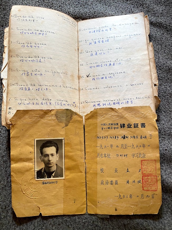 照片7: 阿尔贝尔多老人在中国航校学习时的笔记和证书,老人当年也是帅哥