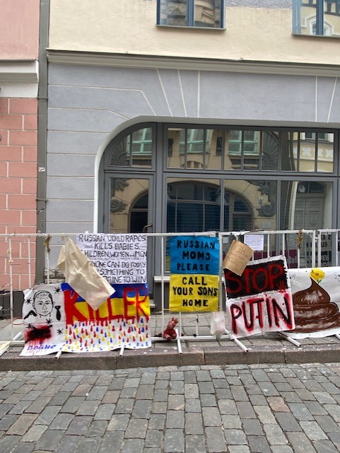 汽车在一望无际的东北欧大平原上行驶二小时后进入爱沙尼亚首都塔林,我们订的酒店就在老城区,与俄罗斯大使馆一街相望,大使馆外安放了铁栅栏保护外交人员安全,铁栅栏上贴满了战火中失去生命的平民的照片,摆放着孩子的玩具,鞋子和鲜花。爱沙尼亚长期被轻视、瓜分,常常只能无力地站在东欧的最边缘,无奈地看着广袤大地上的纷争。而当你真正走进其中,才能感受到它埋藏心底的激情与不屈。