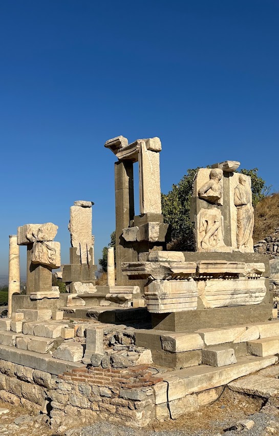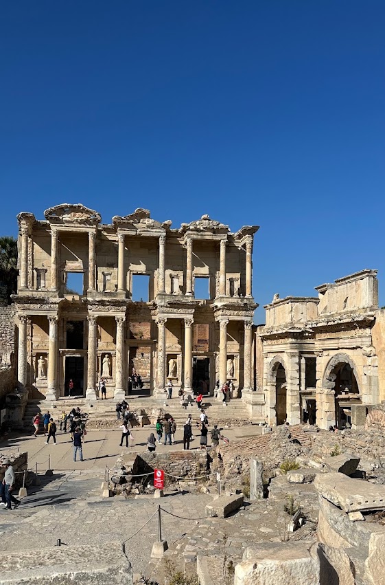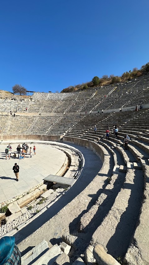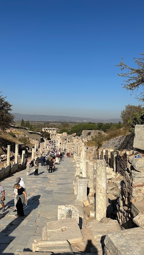 夜鸾山下是古罗马古城以弗所,于公元前10世纪由雅典殖民者建立,是爱琴海东岸保存最完好的罗马古城,城中从神庙到妓院都完整地留存下来,被誉为土耳其的“庞贝古城”。虽然目前挖掘出来的部分不到百分之二十,但已经足以另人震惊。沿着大理石和鹅卵石铺就的街道漫步,可见古罗马大巿场,曾经可容纳 24,000 多人的大剧场。很难想象,在古罗马时代贵族的生活超级奢侈,室内大理石的地板下有加热系统,墙面上有壁画,上厕所前由奴隶先坐在大理石为他们捂热石板,贵族们才上去方便,厕所里面有冲水系统。