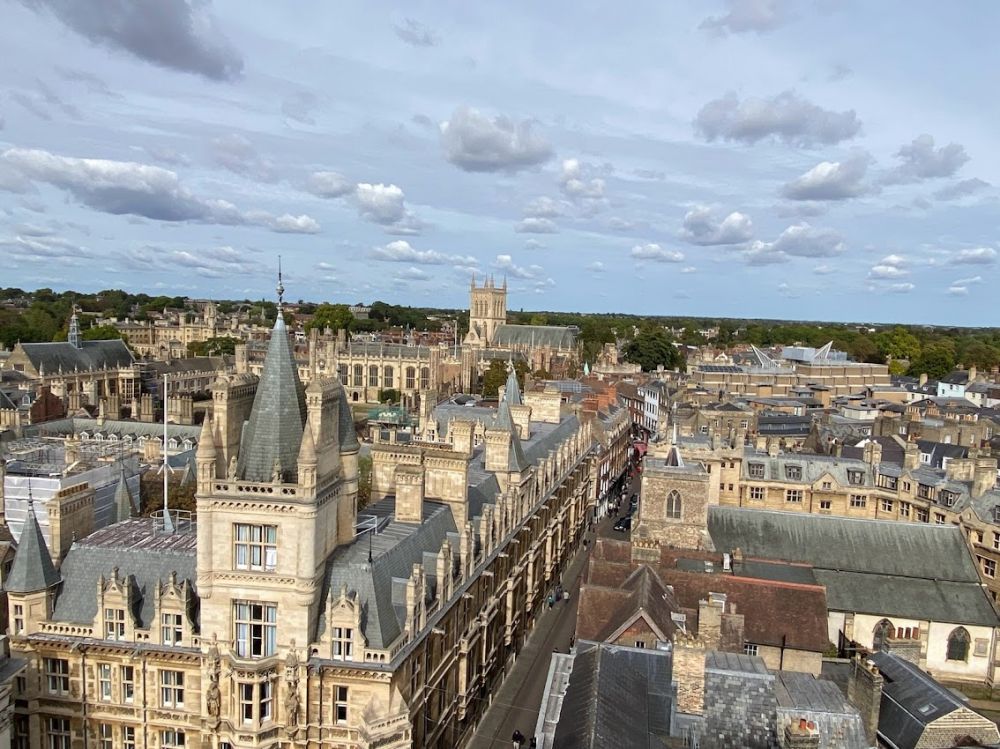 剑桥位于伦敦以北80公里,乘坐火车一个小时到达剑桥。剑桥大学成立于1209年,是英国及世界顶尖的大学之一。从剑桥出的名人数不胜数,包括牛顿、达尔文、霍金等等名人。剑桥大学由三十一独立的学院和组成,各个学院独立招生,有各自独特的管理体系,是一所公立的研究型大学。剑桥大学是由一批年轻的牛津大学学者因为与牛津当地市民发生冲突后移居到剑桥而成立的大学,相同年代是中国的南宋时期,中原大地被女真人占据半壁江山,诗人陆游写下了“位卑未敢忘忧国”的不朽名句。