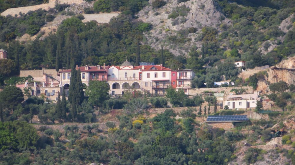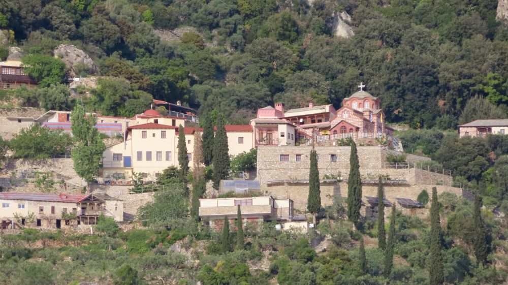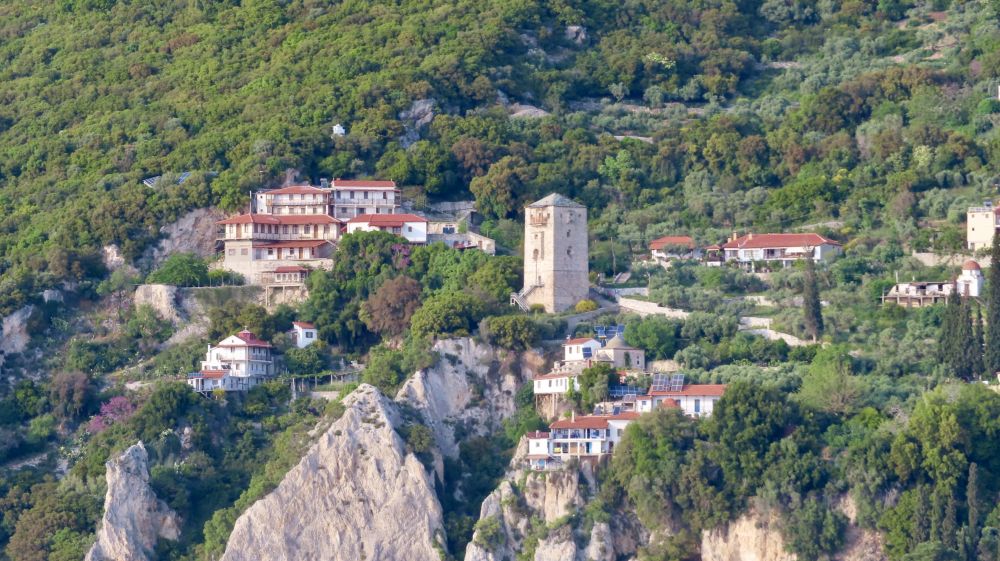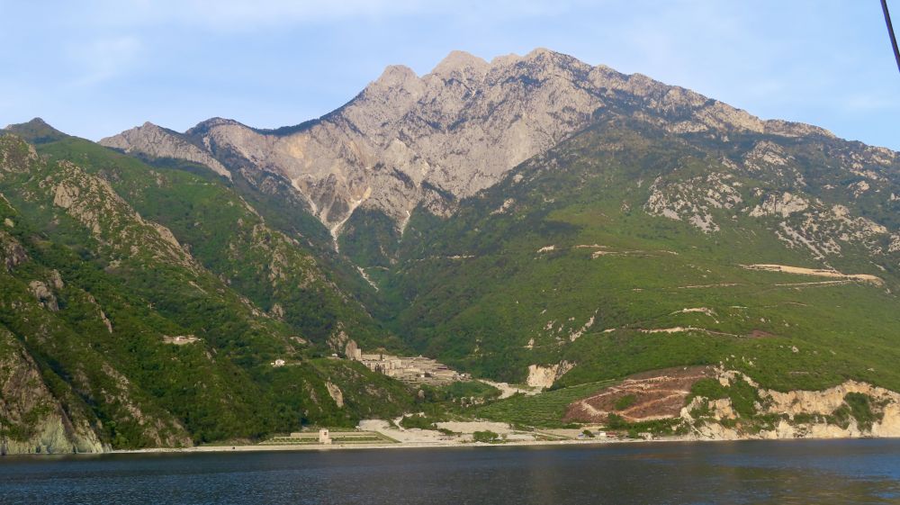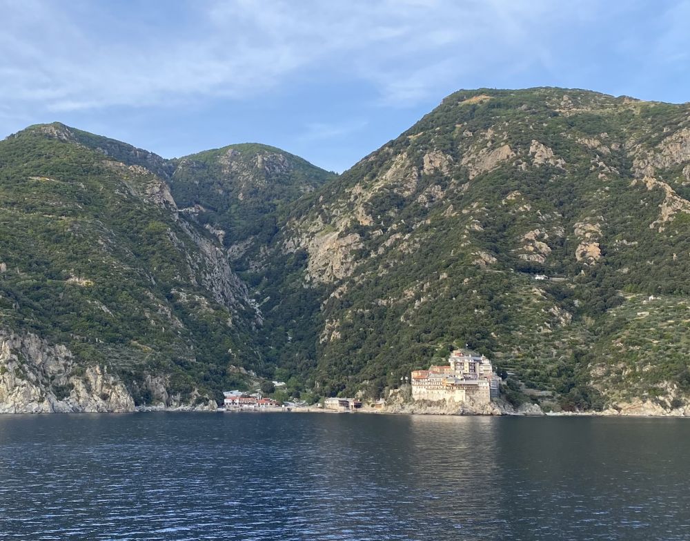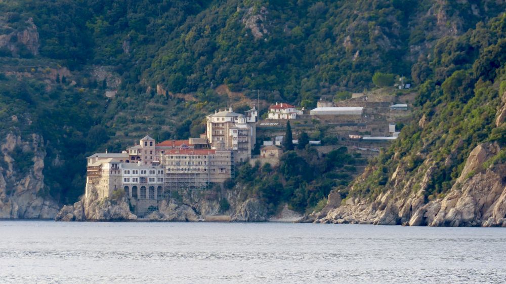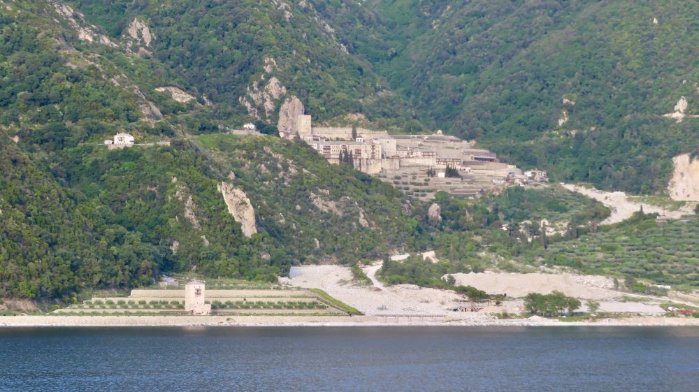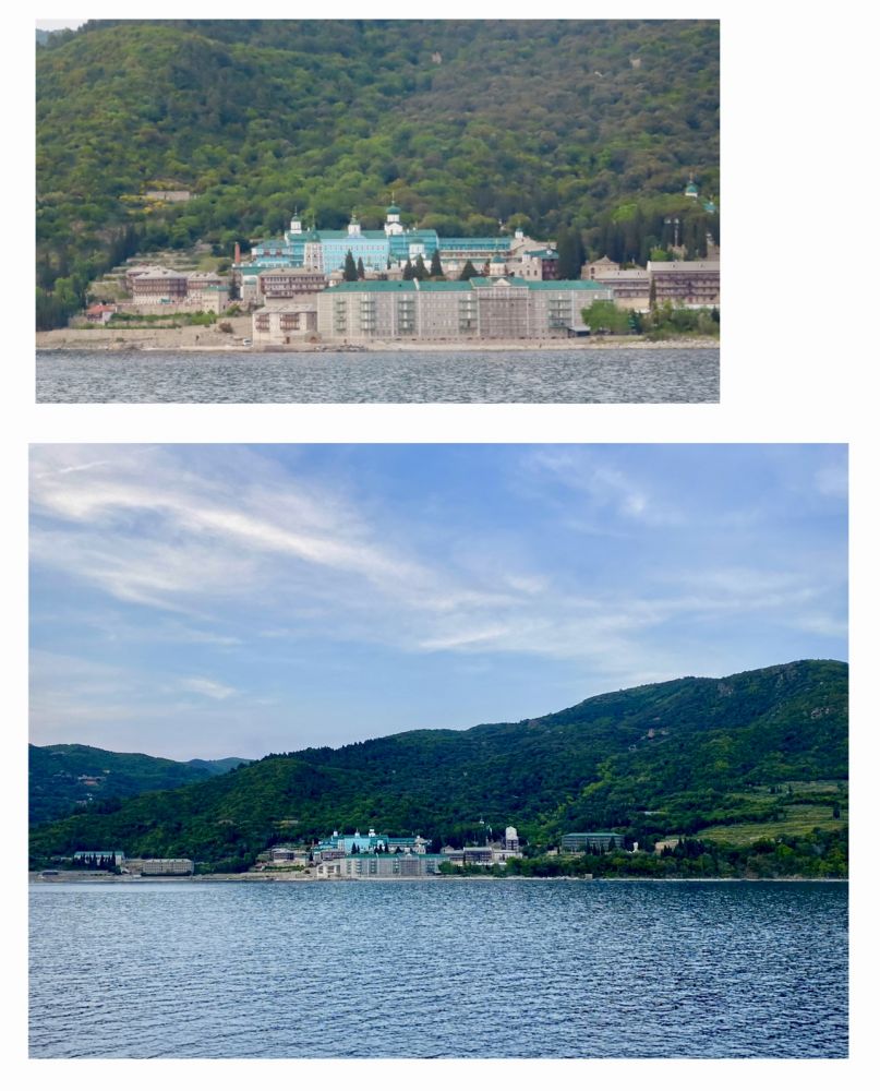 我们是因为乘坐爱琴海的邮轮从这里经过,才了解到这个圣地的。船长特意把船停在阿索斯山半岛的附近的海上,让我们有机会从远处认识一下这个神秘的地方。只不过我们的船不允许进入阿索斯山半岛岸边四百米以内的区域,无论如何,我们至少知道了这里是圣地,阿索斯山依然保留着它的神秘。
