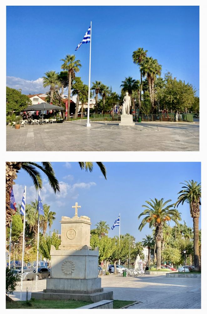 三将广场 (Plateia Trion Navarchon),图中雕塑为希腊开国元首爱奥尼斯·卡波季斯第亚斯