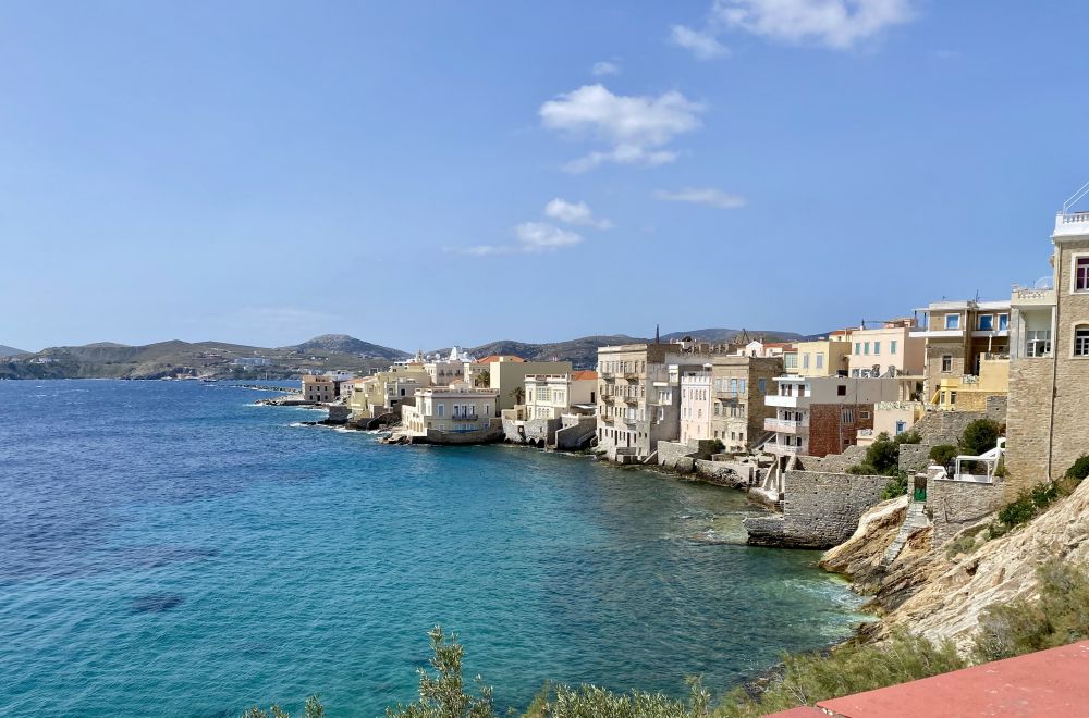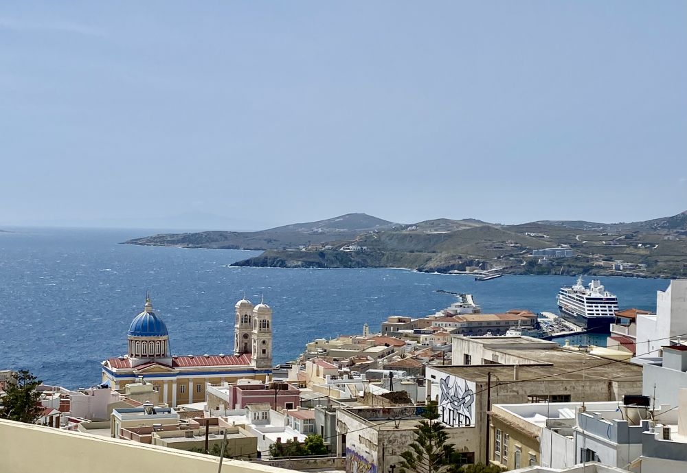 锡罗斯岛(Syros)是爱琴海上的一个希腊小岛,位于雅典东南78海里(144公里)的海上。我们在爱琴海(Aegean)乘邮轮时,由于一个偶然的机会来到了这个岛。我们在乘船前往希腊Piraeus港口的途中,因为风太大,邮轮改变行程,取消了原计划停靠的米科诺斯岛 (Mykonos,简称米岛),改停锡罗斯岛。