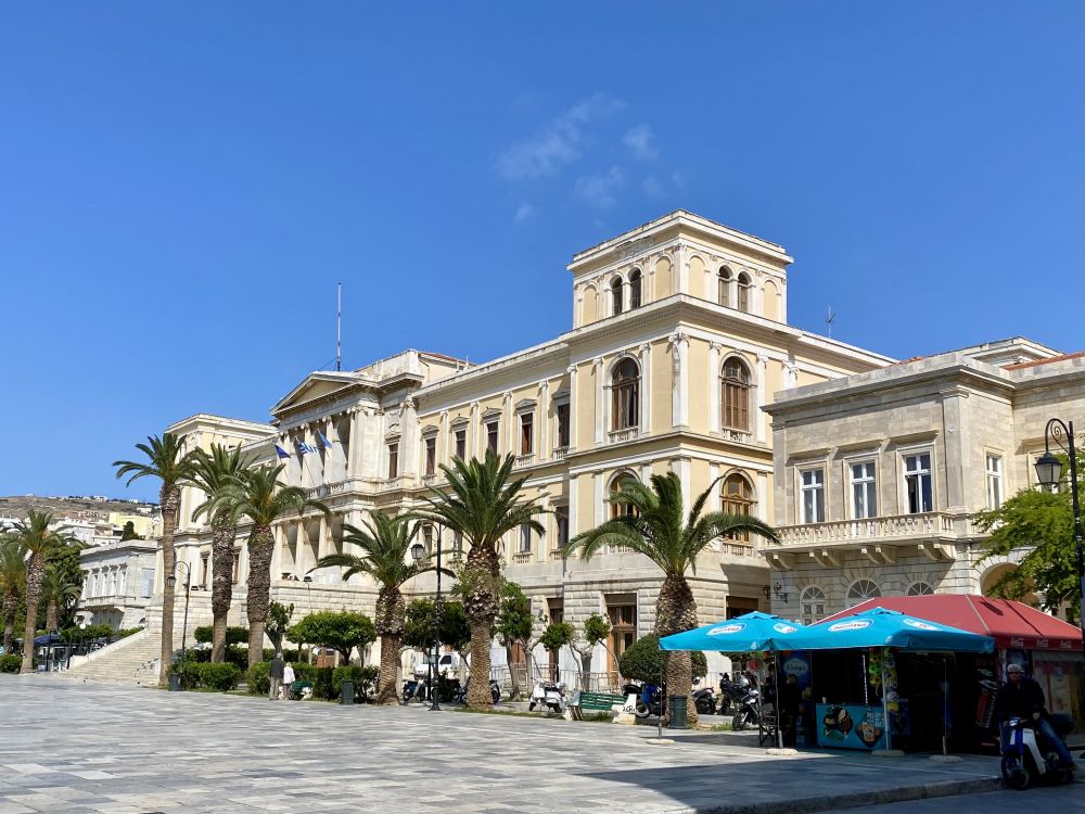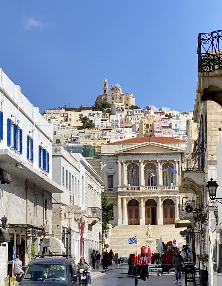 锡罗斯岛上最大的城市叫埃尔穆波利(Ermoupoli),这也是锡罗斯岛所在基克拉泽斯群岛(Cyclades)的首府所在地。我们邮轮停靠的码头到市中心是步行的距离,所以我们选择在岛的随便逛逛。实际上,锡罗斯岛的亮点是海滩,但邮轮停靠的当天风太大,所以我们以游览市区为主。