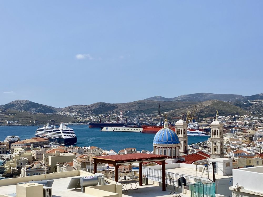 这次行程的改变对很多同船的乘客来说,带来的是抱怨和失望,因为米岛是爱琴海上最受晴睐的两个岛屿之一。爱琴海上另一个热门岛屿当属圣托里尼岛(Santorini,简称圣岛)。但对我们来说,停靠锡罗斯岛 反而是因祸得福,因为我们从前去过米岛,而锡罗斯岛对我们来说更新鲜。