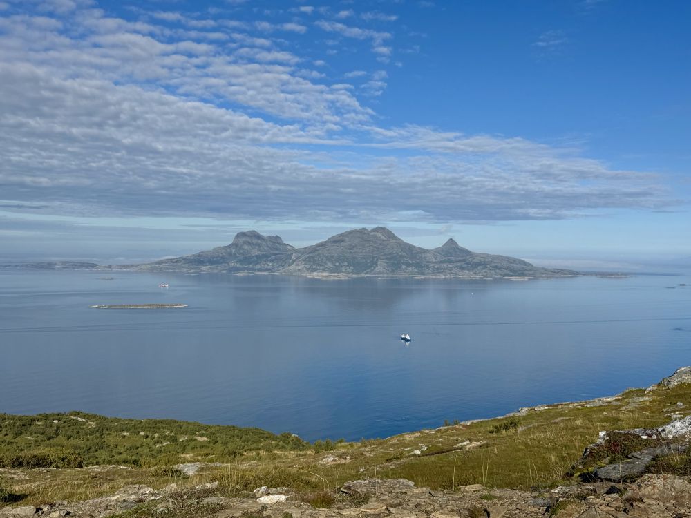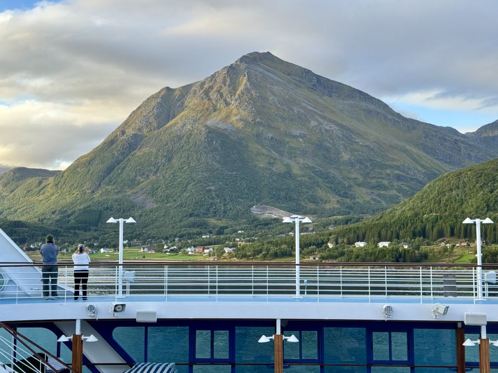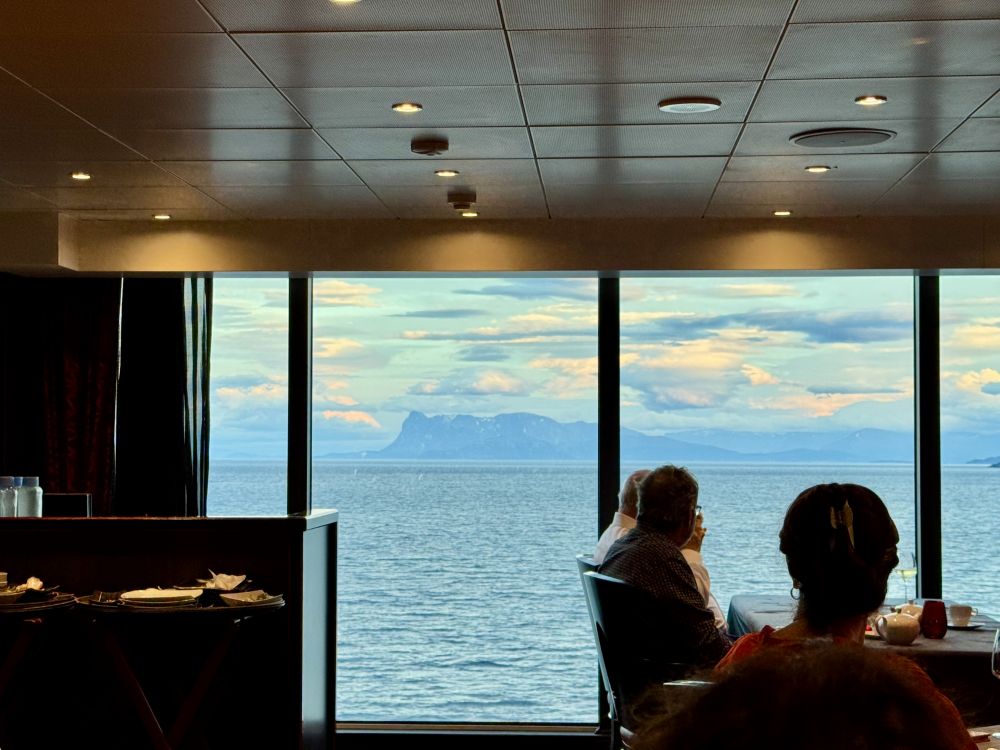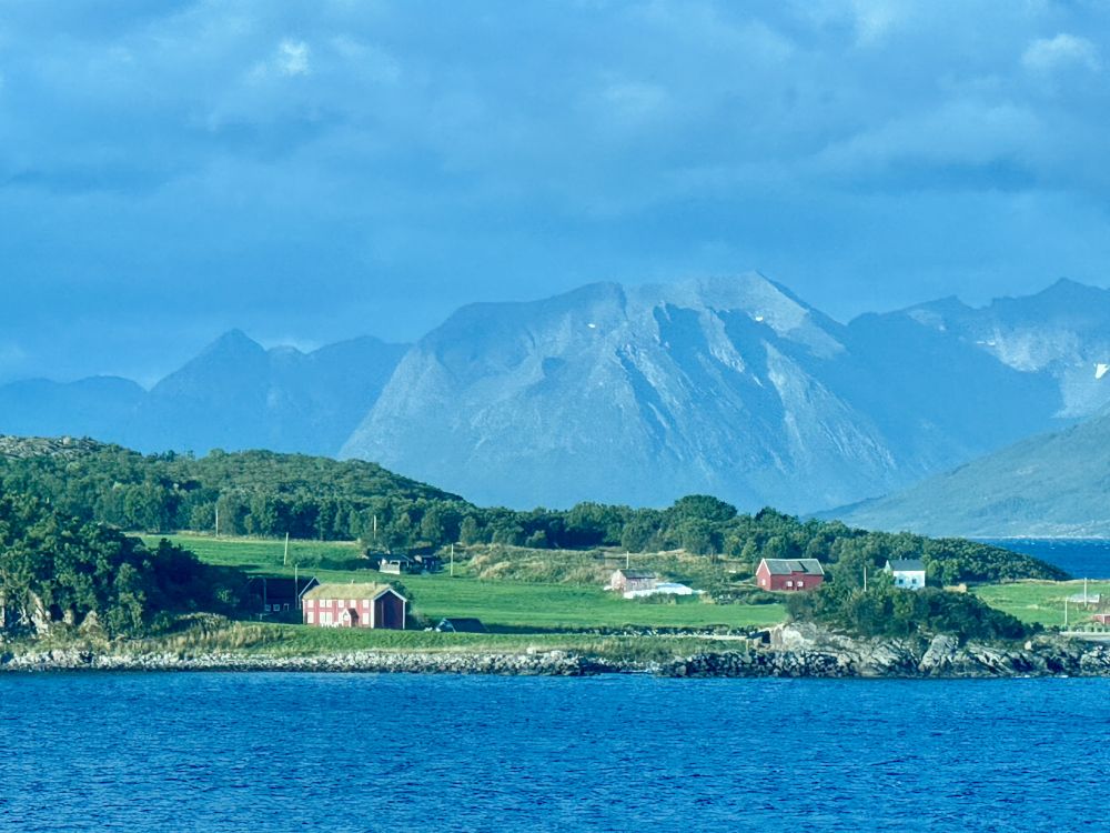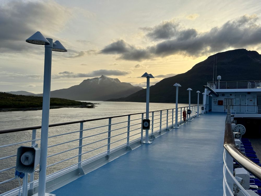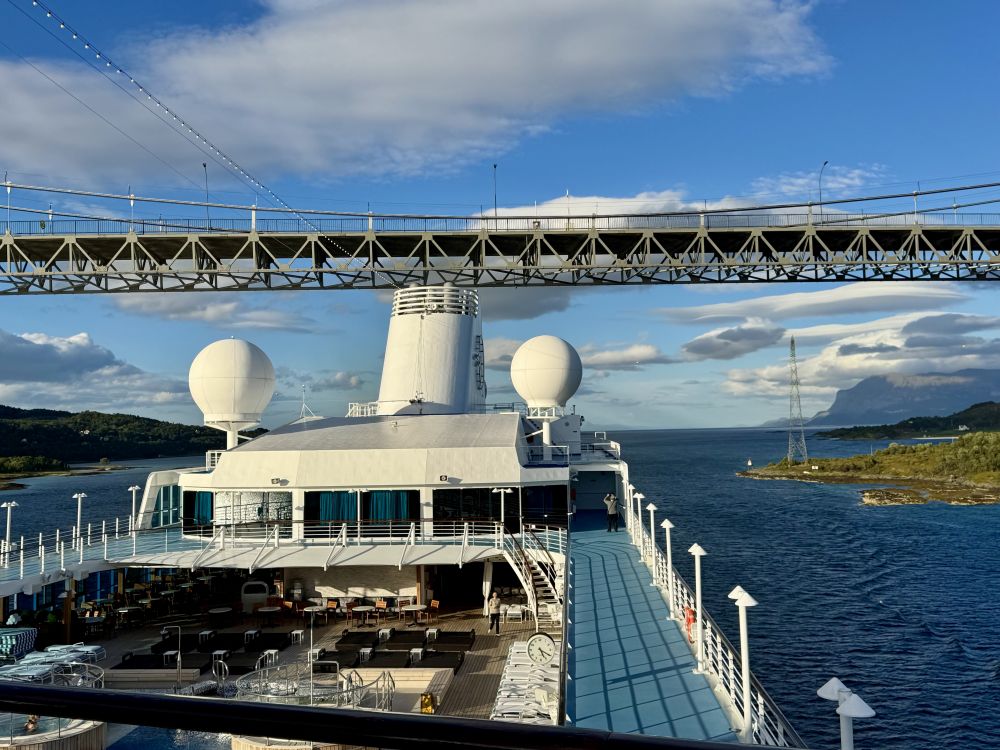 从Harstad去下一个港口Bodo,我们的邮轮可以从Tjeldsund桥底下穿过走峡湾,航行路程较短,水域相对平静,很多大型邮轮因为太高只能绕行走外海。
